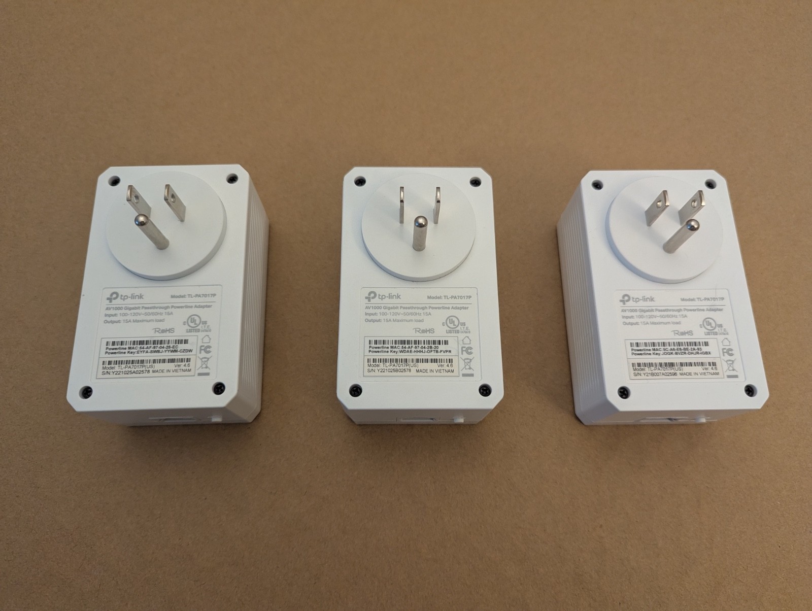3-pack TP-Link AV1000 TL-PA7017P Gigabit Passthrough Powerline Adapters