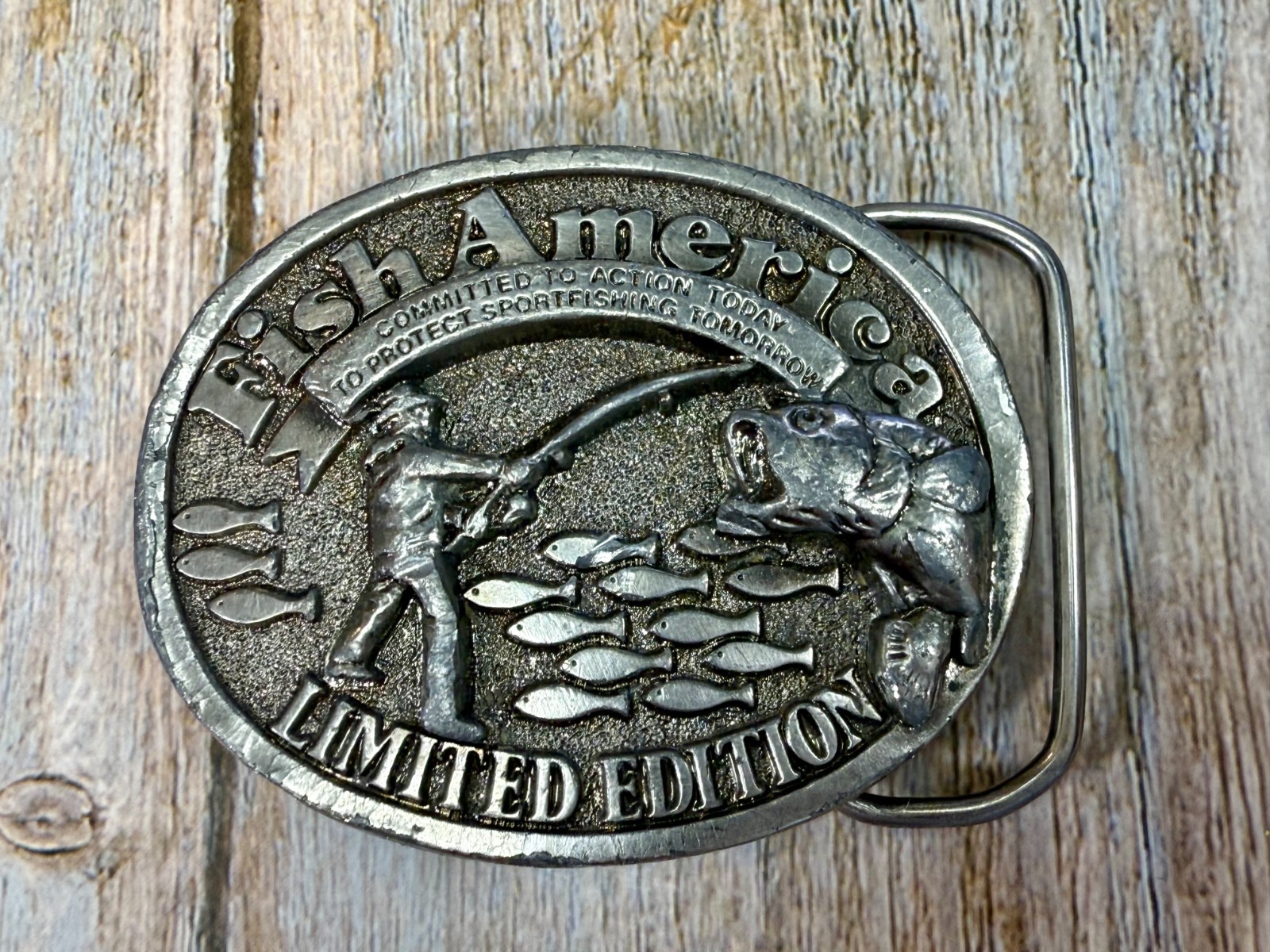 как выглядит Fish America COMMITTED TO ACTION TO PROTECT SPORT FISHING Fisherman Belt Buckle фото