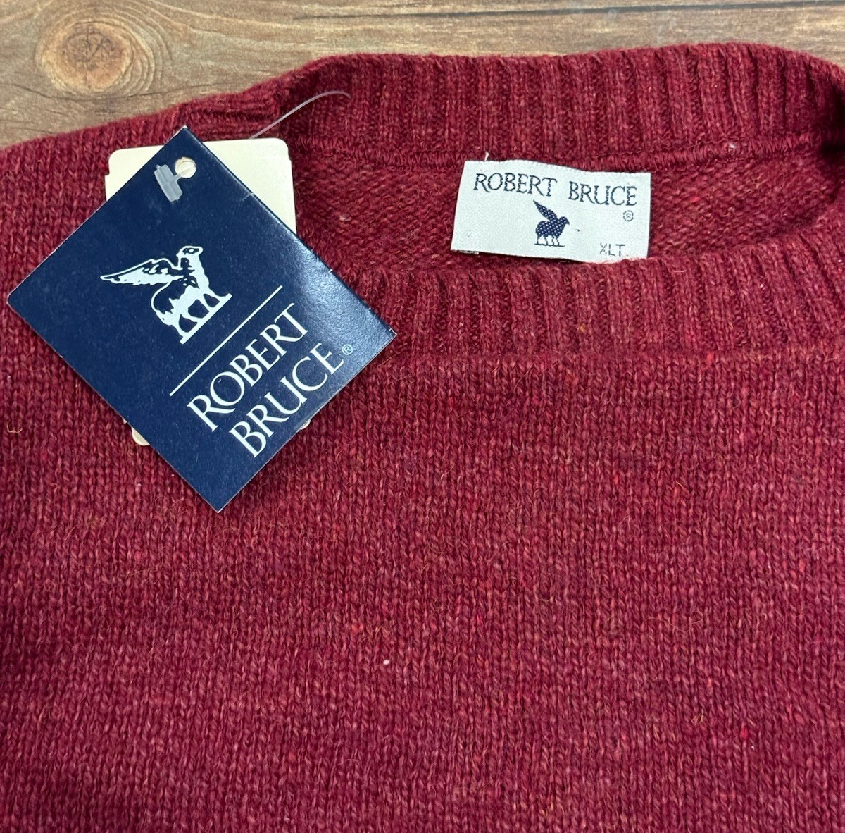 как выглядит Vtg Robert Bruce Sweater Mens XLT Red Wool Blend Crewneck Knit Pullover Made USA фото