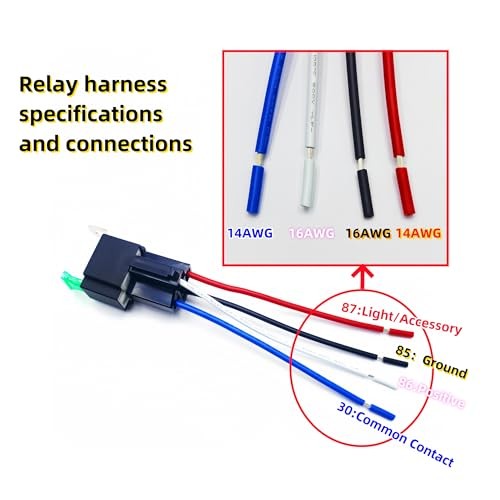 4-pin 12V 30 amp Fuse Relay Switch Set with 14 AWG hot Wire, 12V DC 4-pin SPST