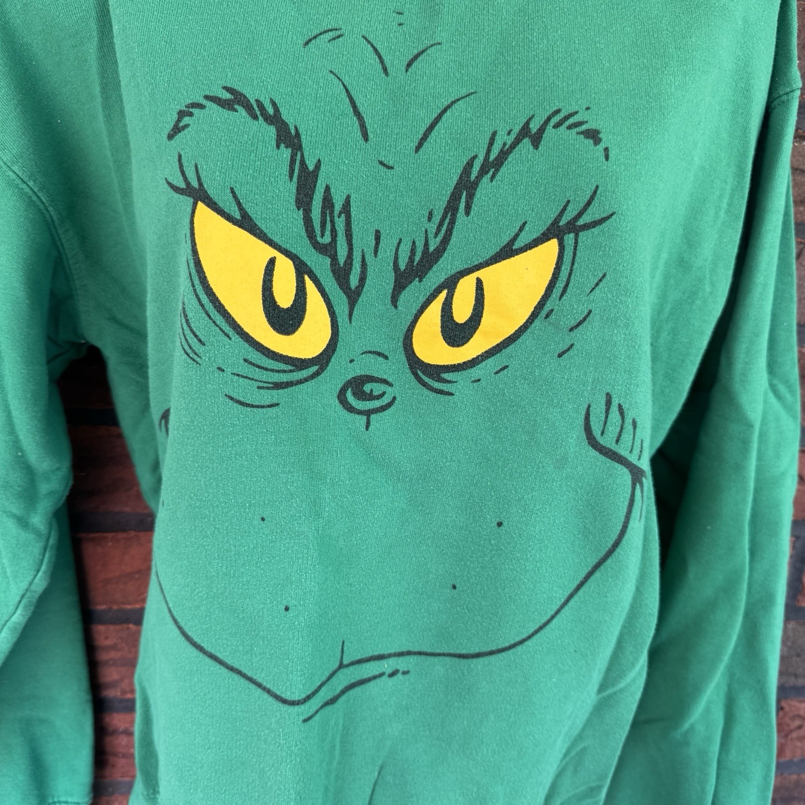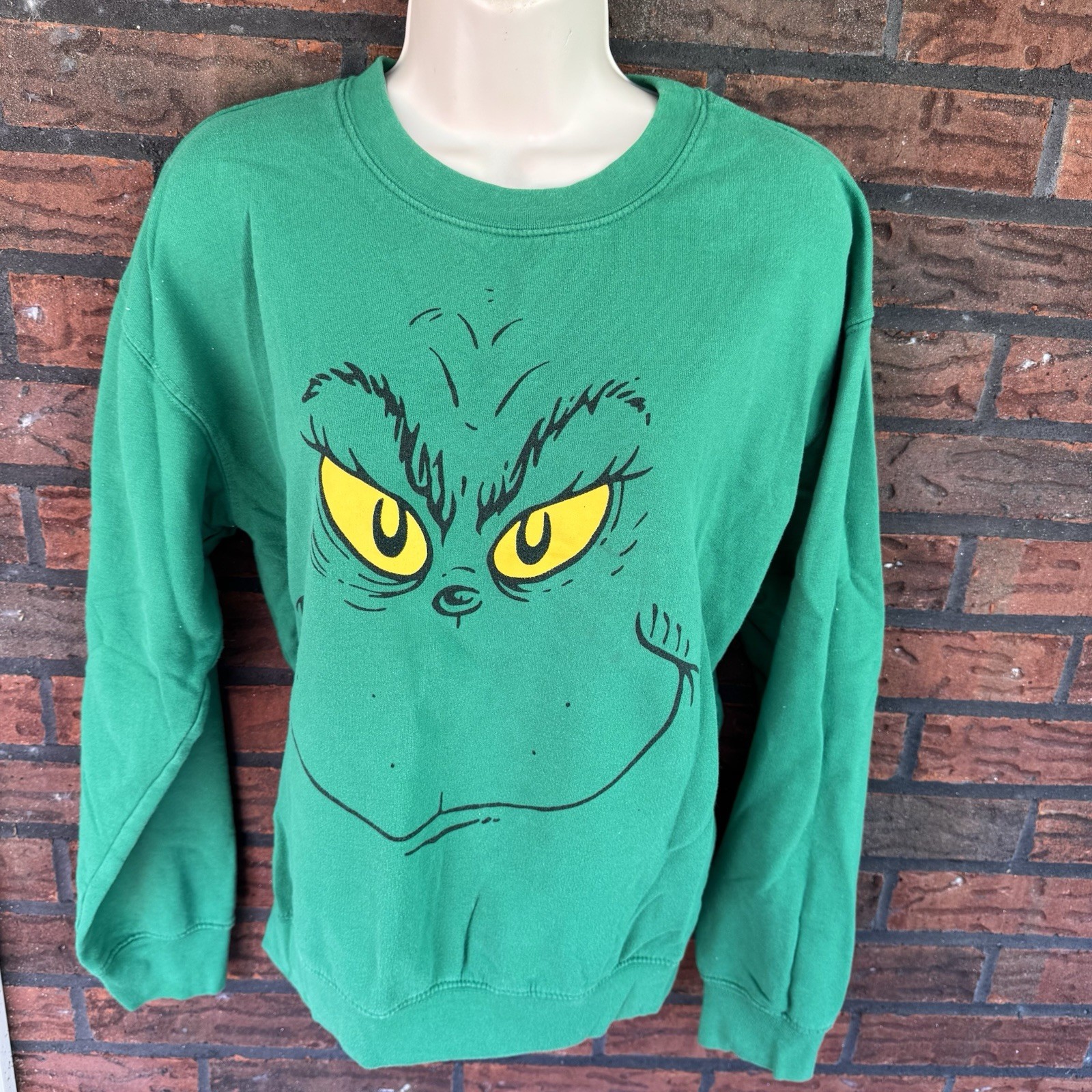 как выглядит Christmas The Grinch Face Sweatshirt Medium Long Sleeve Green Shirt Dr Seuss Top фото