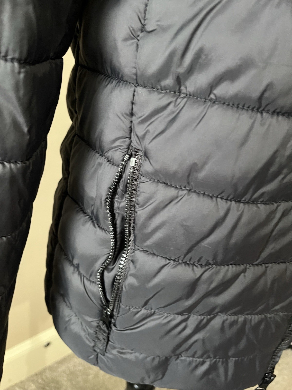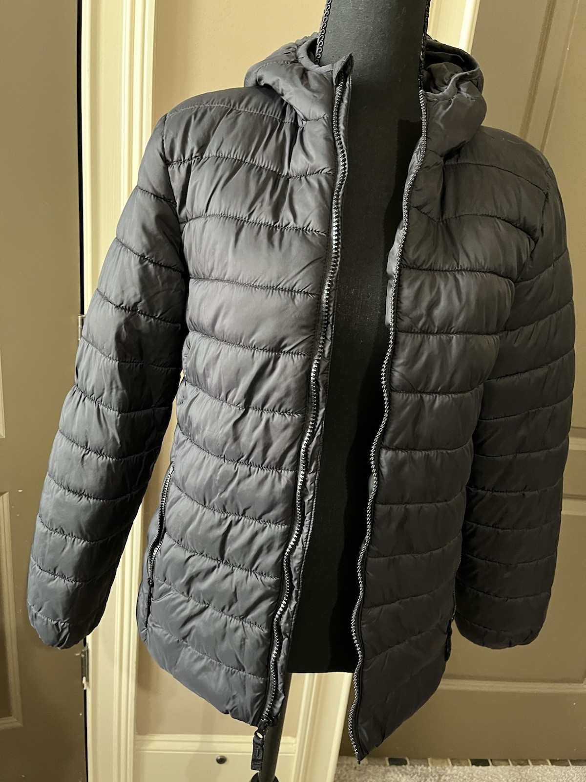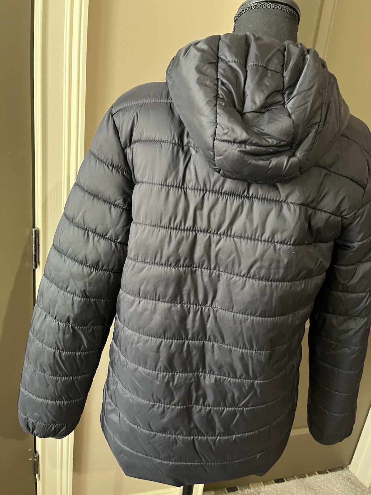 как выглядит Kids Thereabouts Black Hooded Puffer Jacket L 14-16 Nylon Polyester Zip Pockets фото