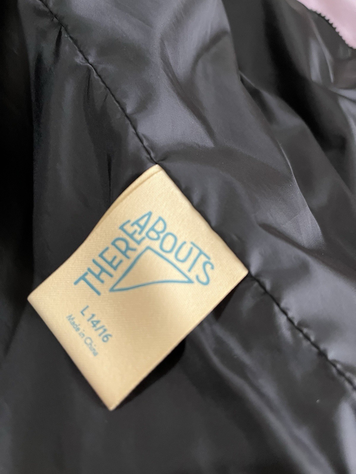 Kids Thereabouts Black Hooded Puffer Jacket L 14-16 Nylon Polyester Zip Pockets
