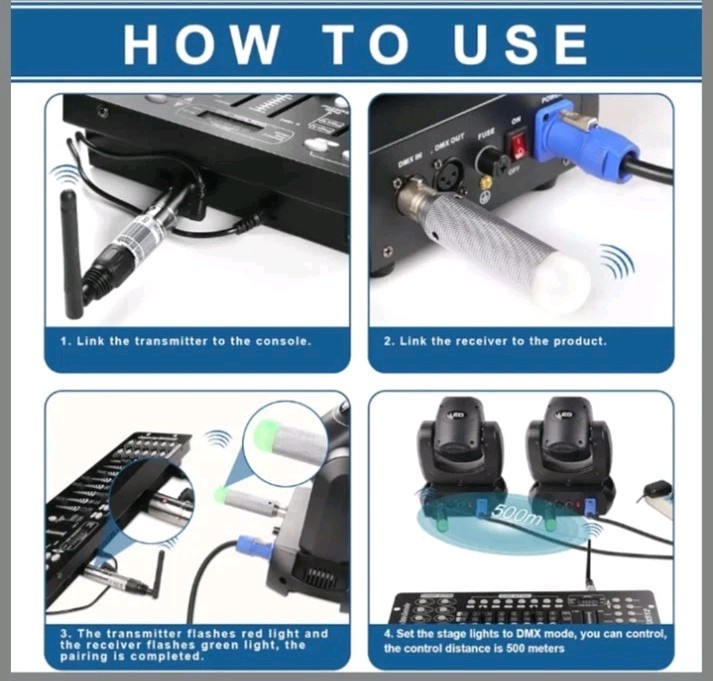ZonQoonz DMX Wireless 4Pcs, 3 Pcs Rechargeable Receivers and 1 Pcs 2.4G DMX 512
