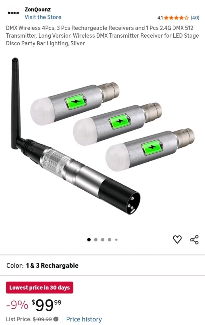 как выглядит ZonQoonz DMX Wireless 4Pcs, 3 Pcs Rechargeable Receivers and 1 Pcs 2.4G DMX 512 фото