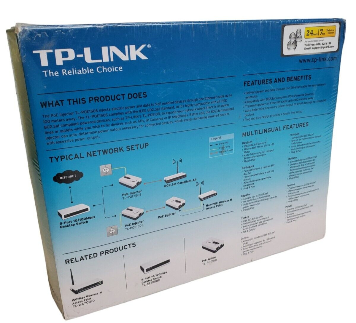 TP Link TL PoE150S PoE Injector IEEE 802.3af Compliant Plug and Play SEALED