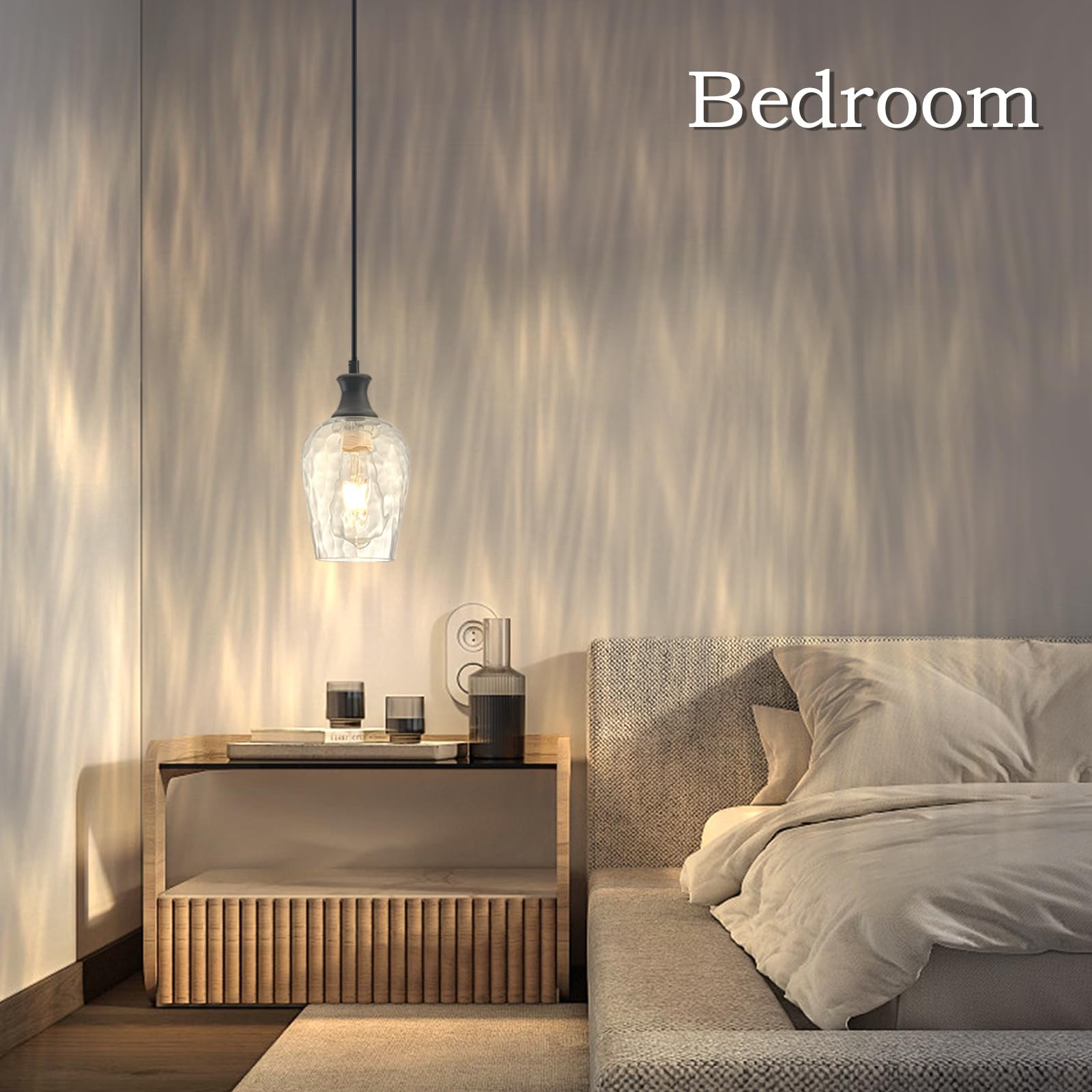 как выглядит Glass Pendant Lights Kitchen Island, Farmhouse Black Pendant Light with Clear... фото