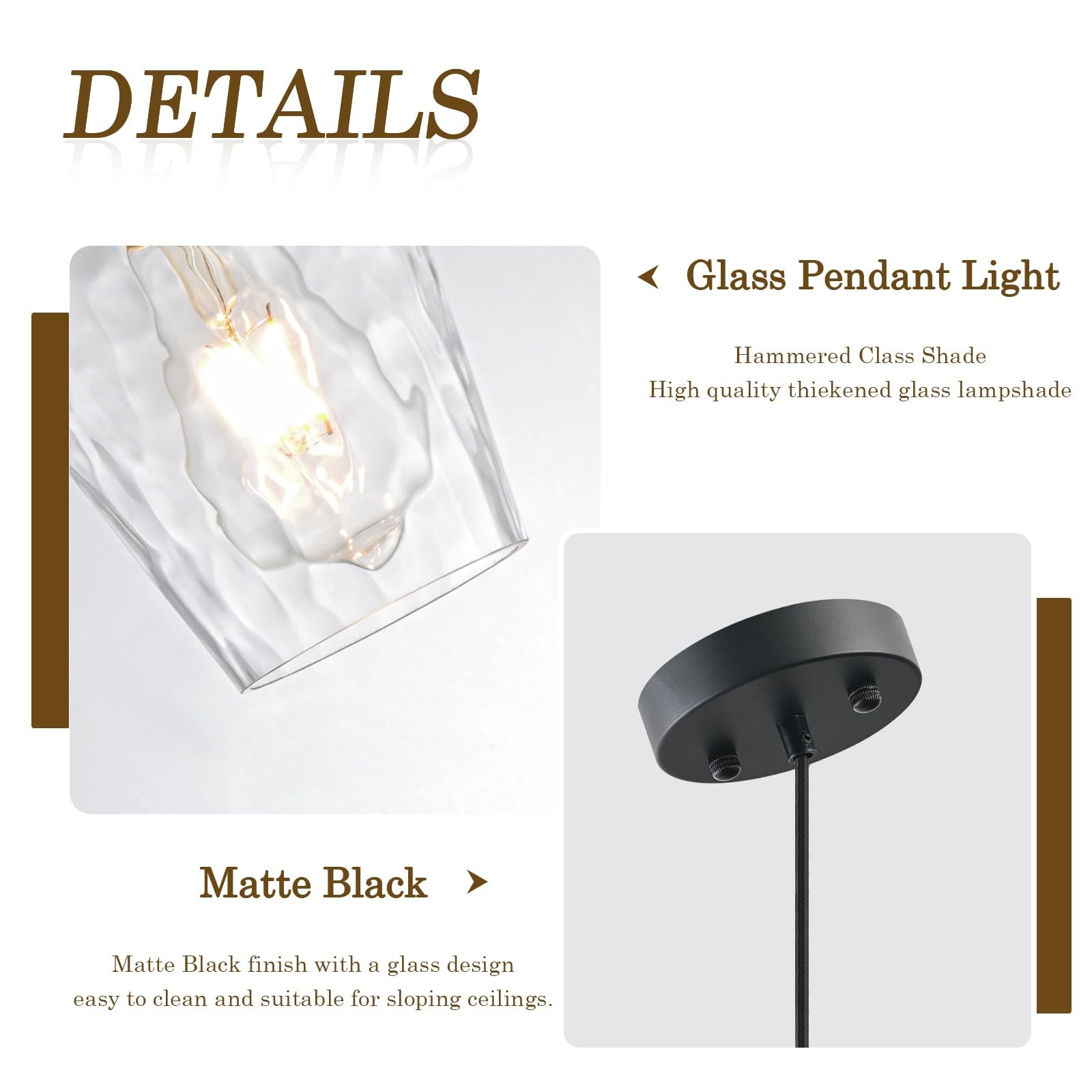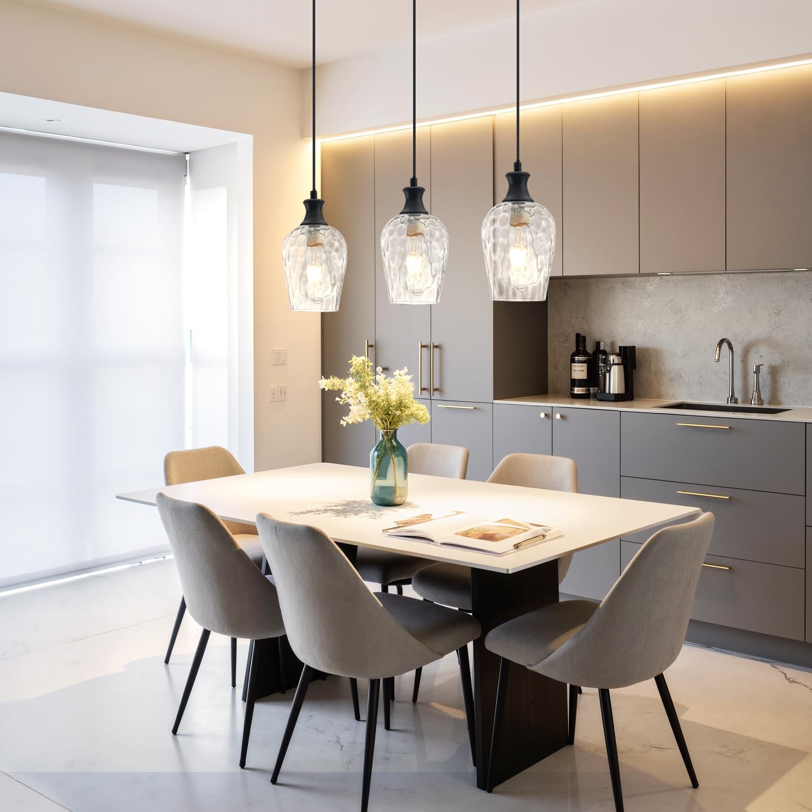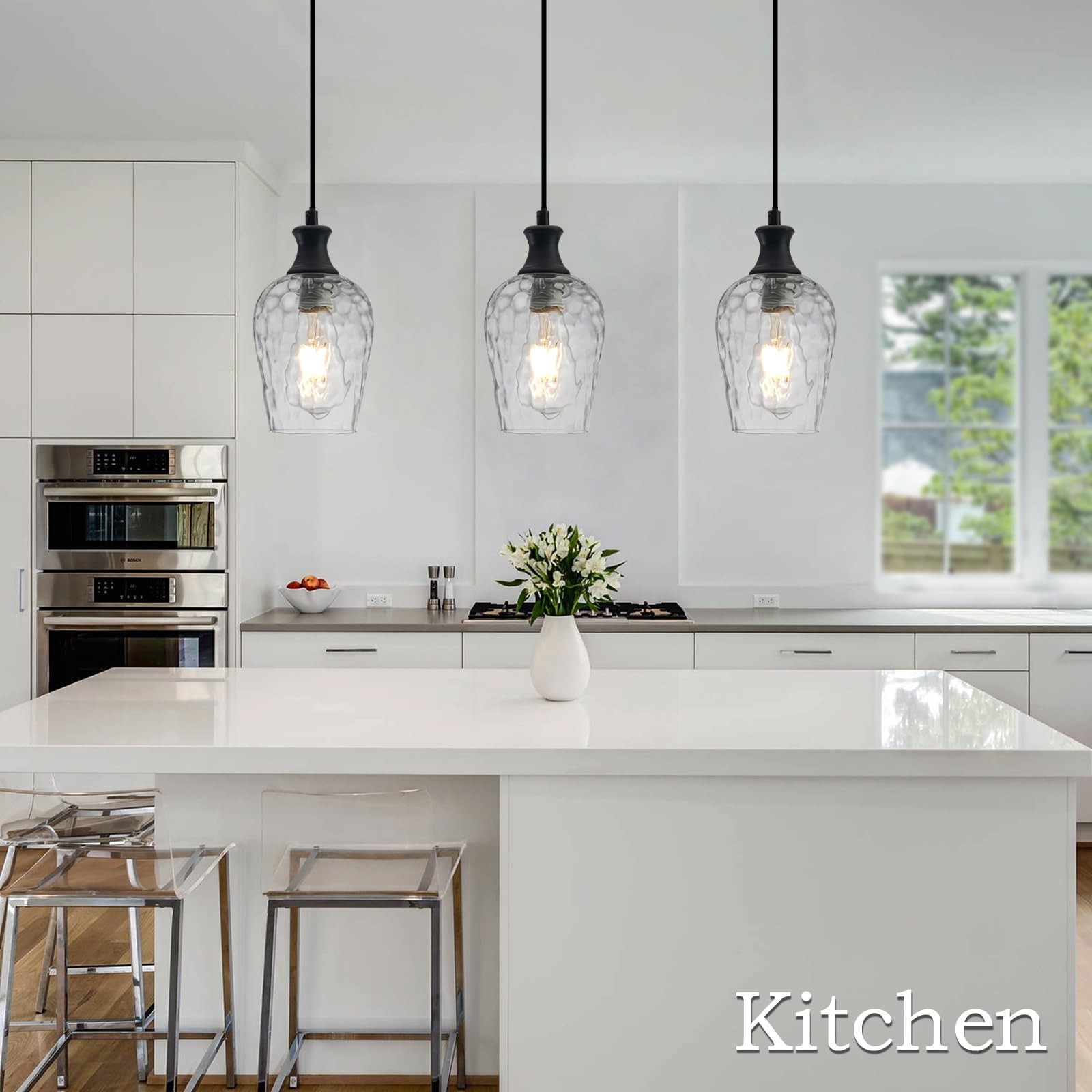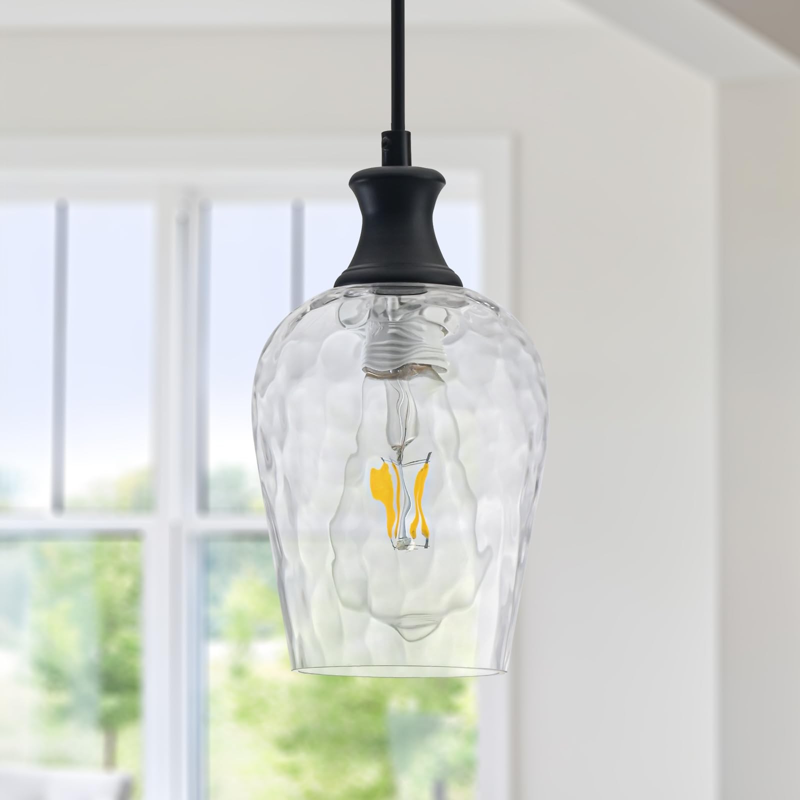 Glass Pendant Lights Kitchen Island, Farmhouse Black Pendant Light with Clear...