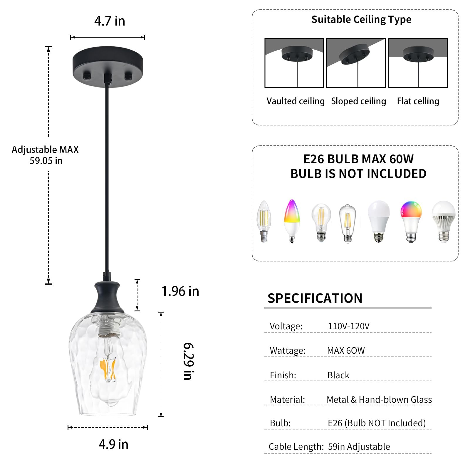 Included Components: Instruction Manual, Mounting Hardware, 1 Pack Pendant Light
