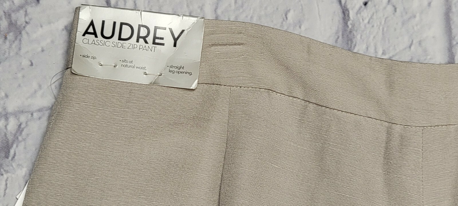 как выглядит NWT KASPER AUDREY 12 CLASSIC SIDE ZIP LINEN LINED PEBBLE BEIGE DRESS WORK PANTS фото
