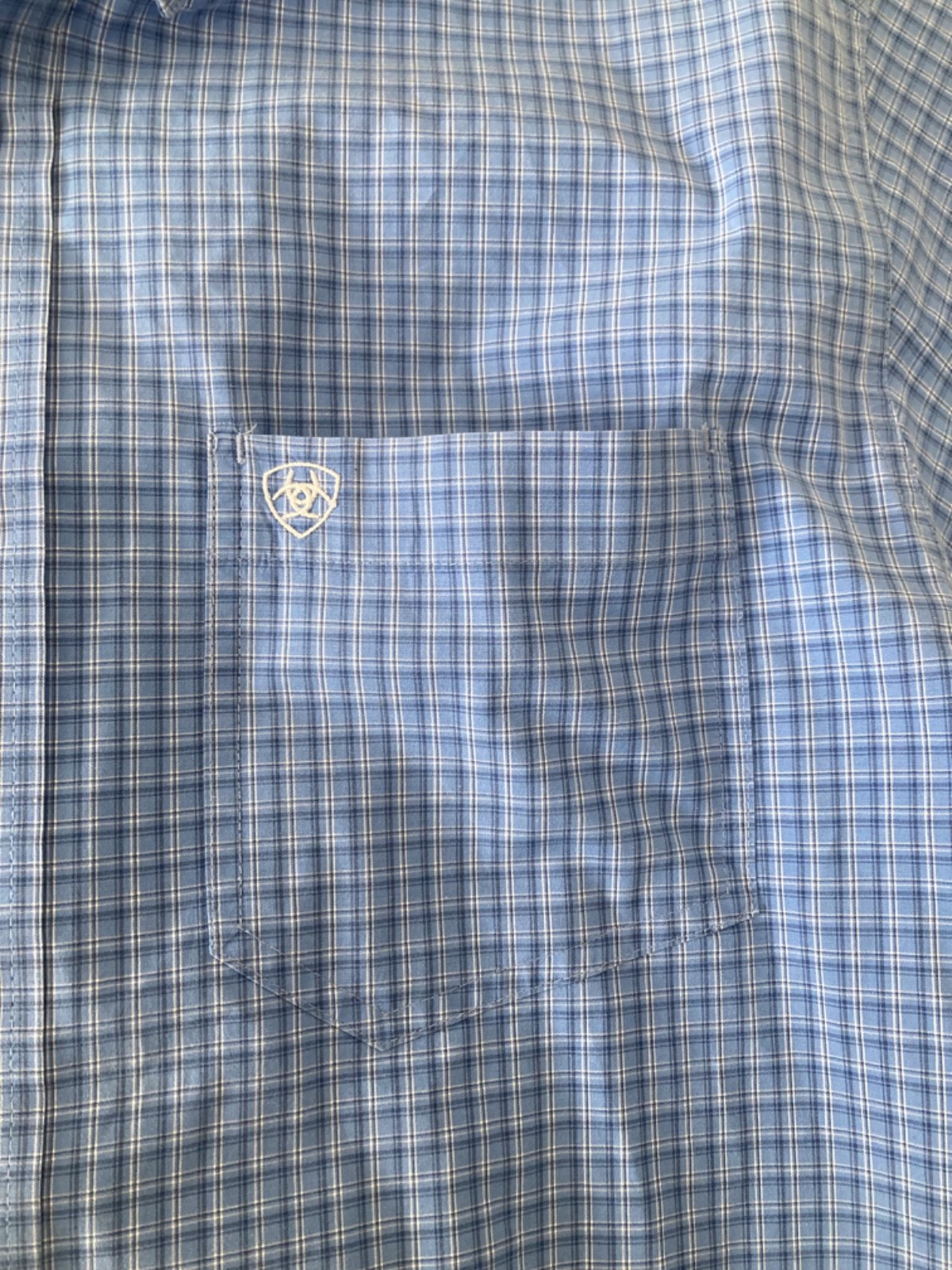 как выглядит Ariat Pro Series Men s Large Blue Check Short Sleeve Button Down Shirt EUC фото