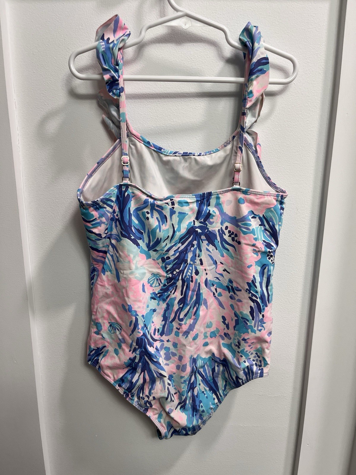 как выглядит Lilly Pulitzer Girls Ariana One-Piece Swimsuit Size 12 Floral Ruffles фото