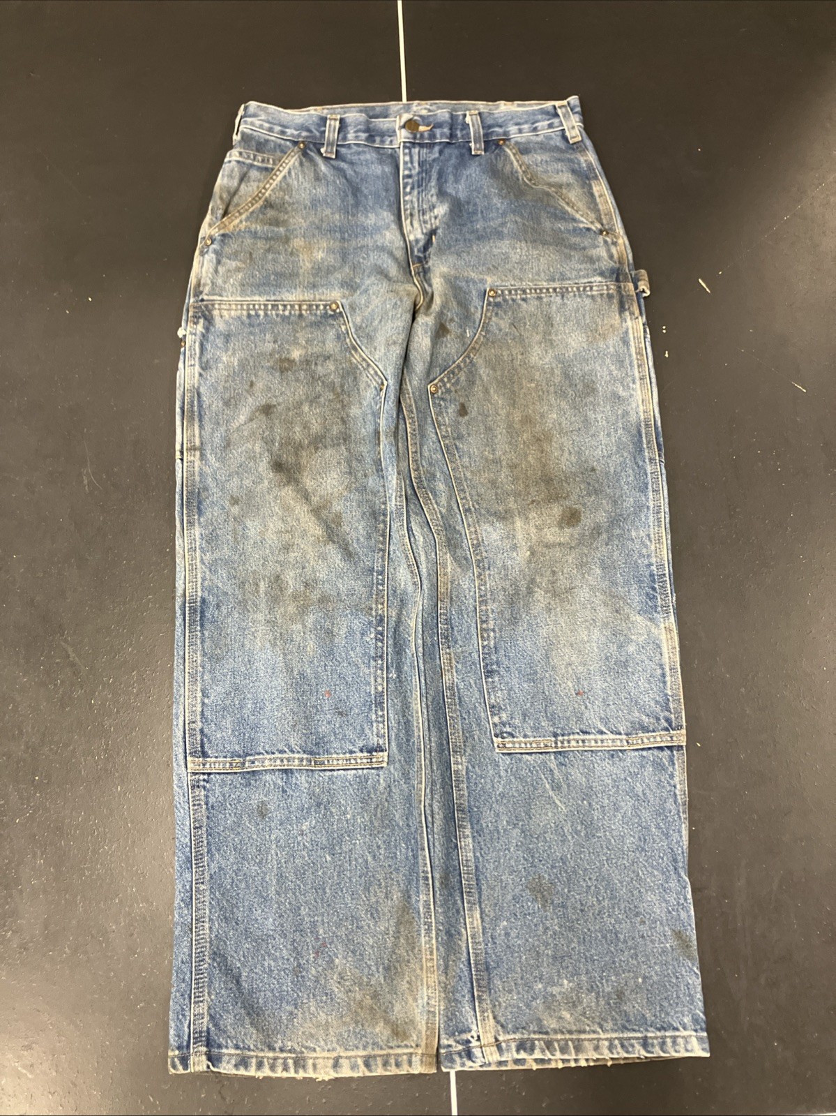 как выглядит VTG Carhartt Men s Loose Thrashed Carpenter Painters Blue Jeans Actual 32x28 фото