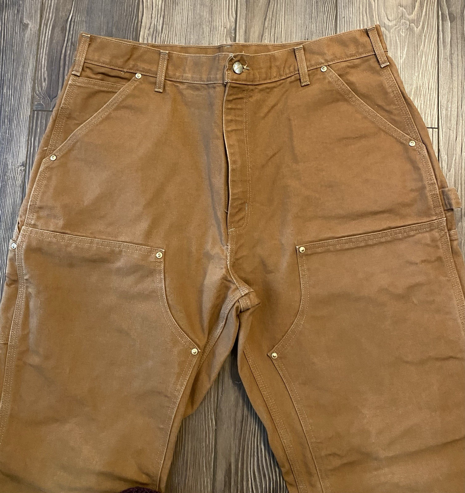 как выглядит CARHARTT B01 Original Fit X2 Knee Brown Duck Canvas Work Pants 38 x 32 USA Made фото