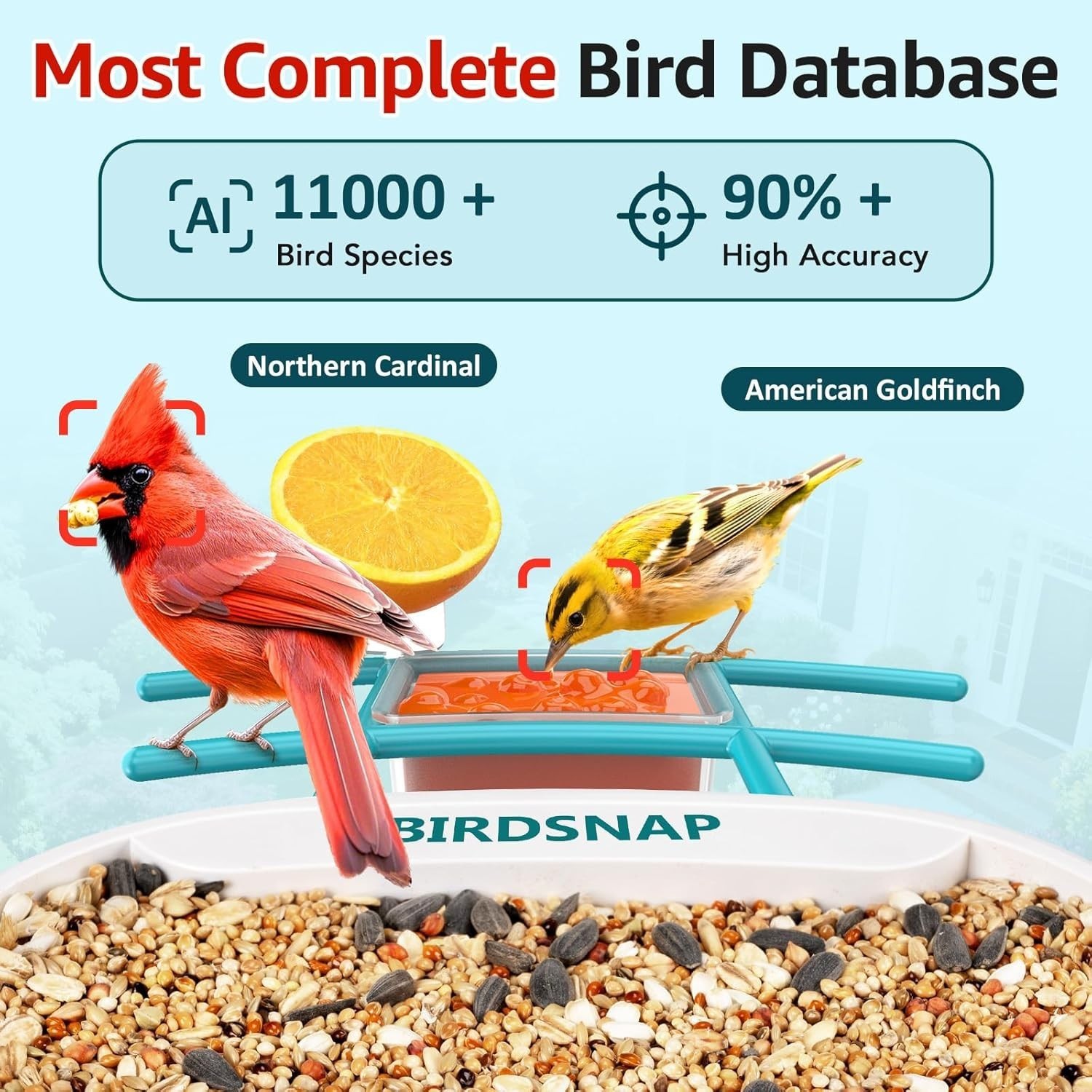 Birdsnap TUC Bird Feeder w/ Camera 2K HD, Solar Panel 32GB 4-in-1 Perch, 160