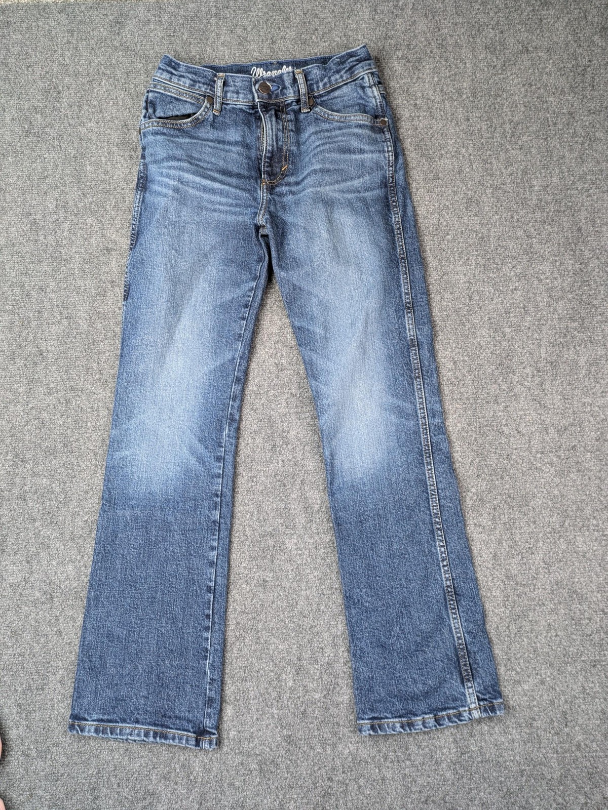 как выглядит Wrangler Retro Jeans Kids Boys 14 Blue Bootcut Adjustable Waist Denim Slim Boot фото