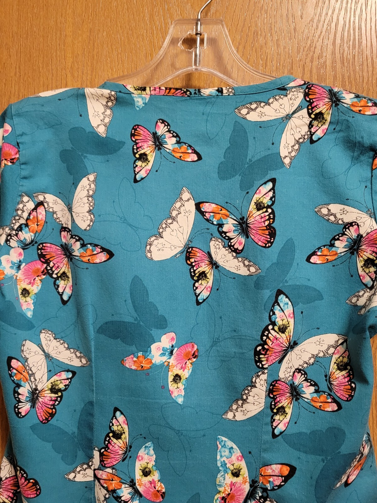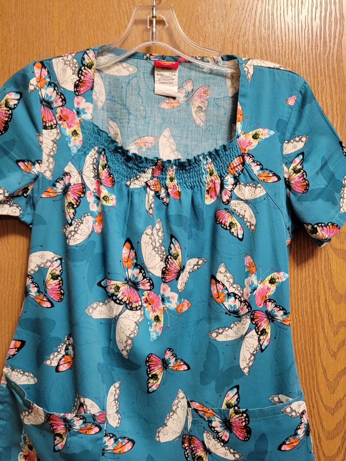 Green With Multi Colored Butterflies Scrub Top By Dickies Sz XS Very Nice Condtn