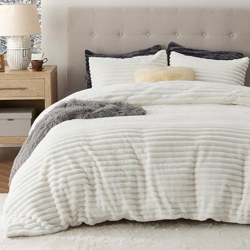 Fluffy Duvet Cover Set - Queen 90 x 90 01 - Coconut White No Comforter