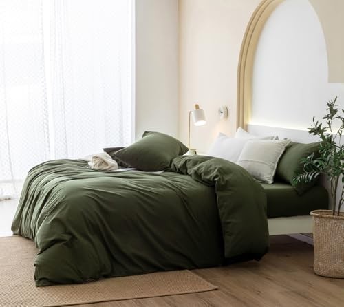 100 Washed Cotton Duvet California King 104x98 Olive Green no Comforter