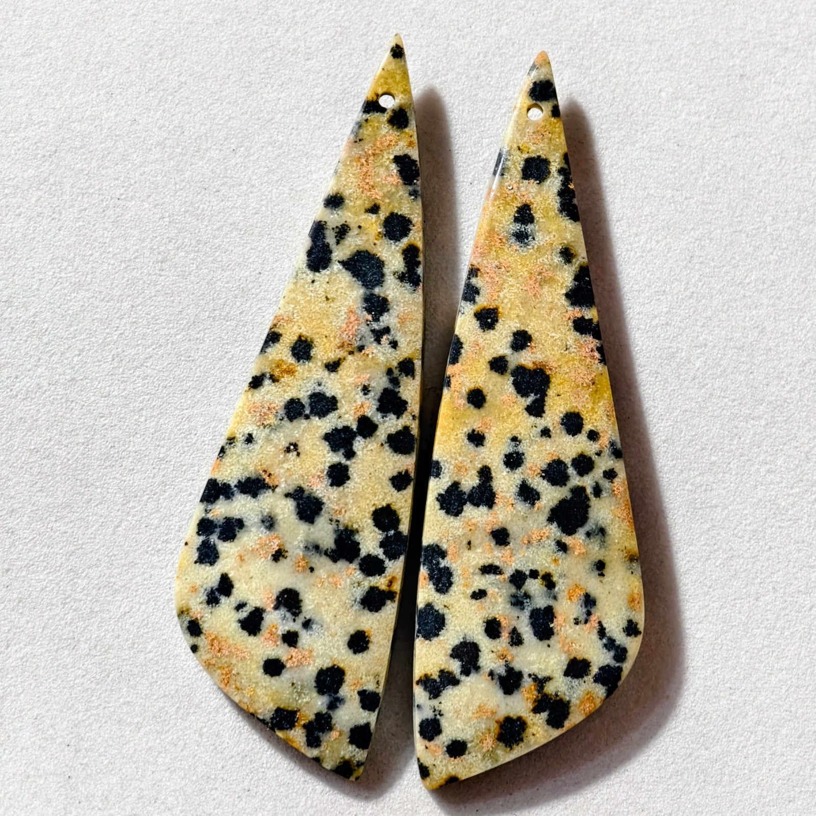 58 Cts Natural Dalmatian Jasper Drilled Pair Cabochon Gemstone 56.2 X 17.2 MM