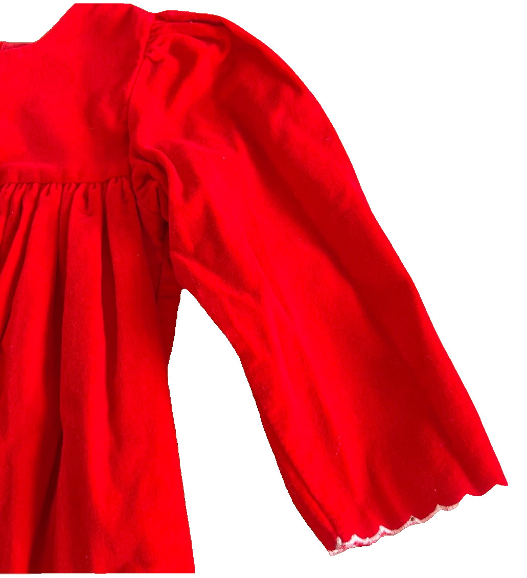 VTG 90s Baby Togs Girls Red Velvet Holiday Dress Christmas With White Trim