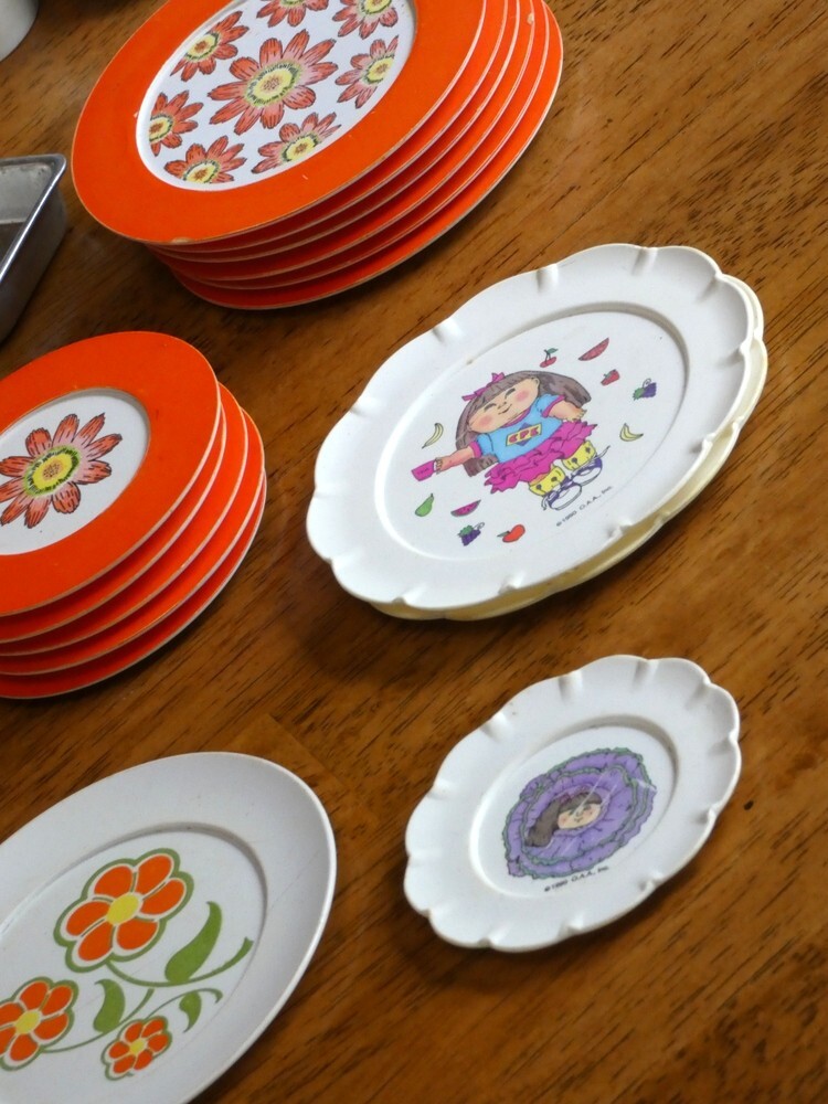Vintage Childrens Play Dishes Pots and Pans Lot Plastic and Aluminum 76 Pieces