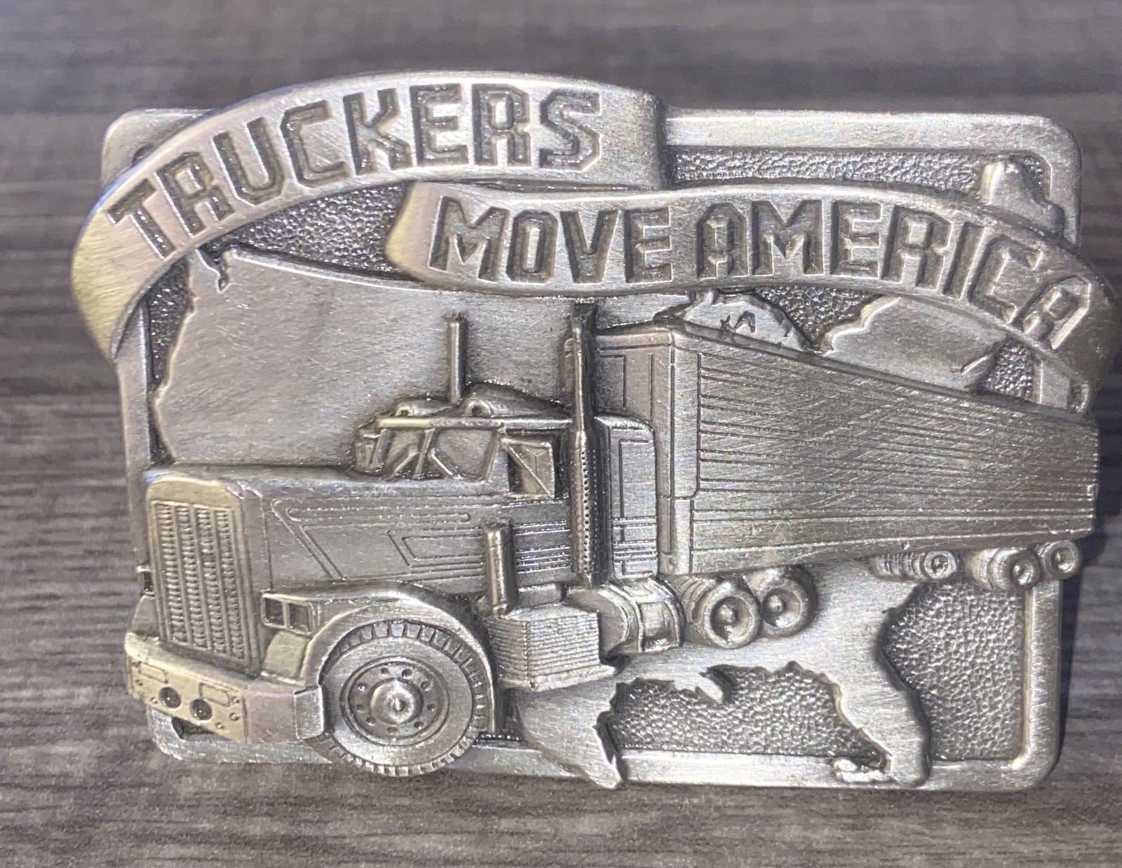 VINTAGE 1983 TRUCKERS MOVE AMERICA SEMI, RIG, TRUCK DRIVER BELT BUCKLE, RARE
