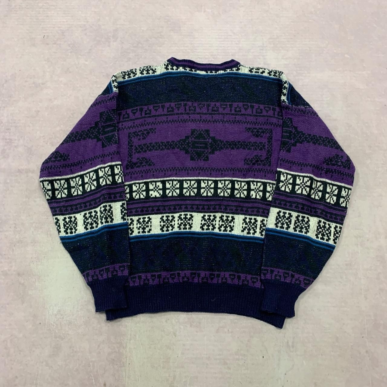как выглядит Vintage Knitted Jumper abstract patterned grandad knit sweater Mens XL фото