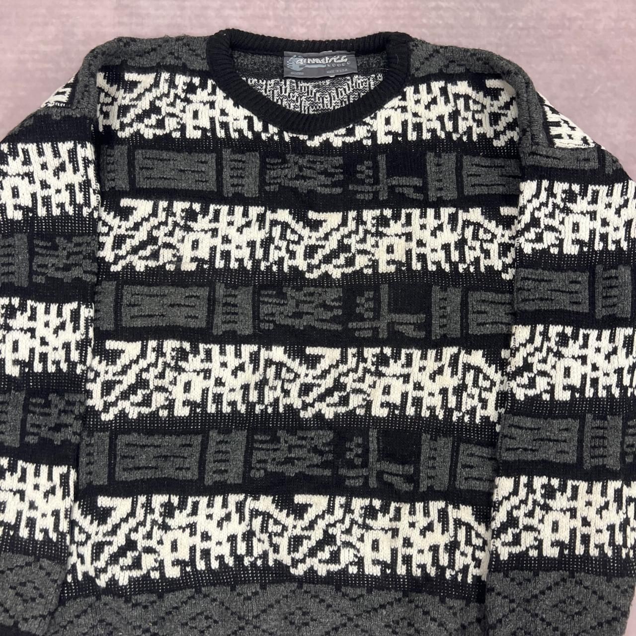 как выглядит Vintage Knitted Jumper Abstract Patterned Grandad Knit Sweater Mens L фото