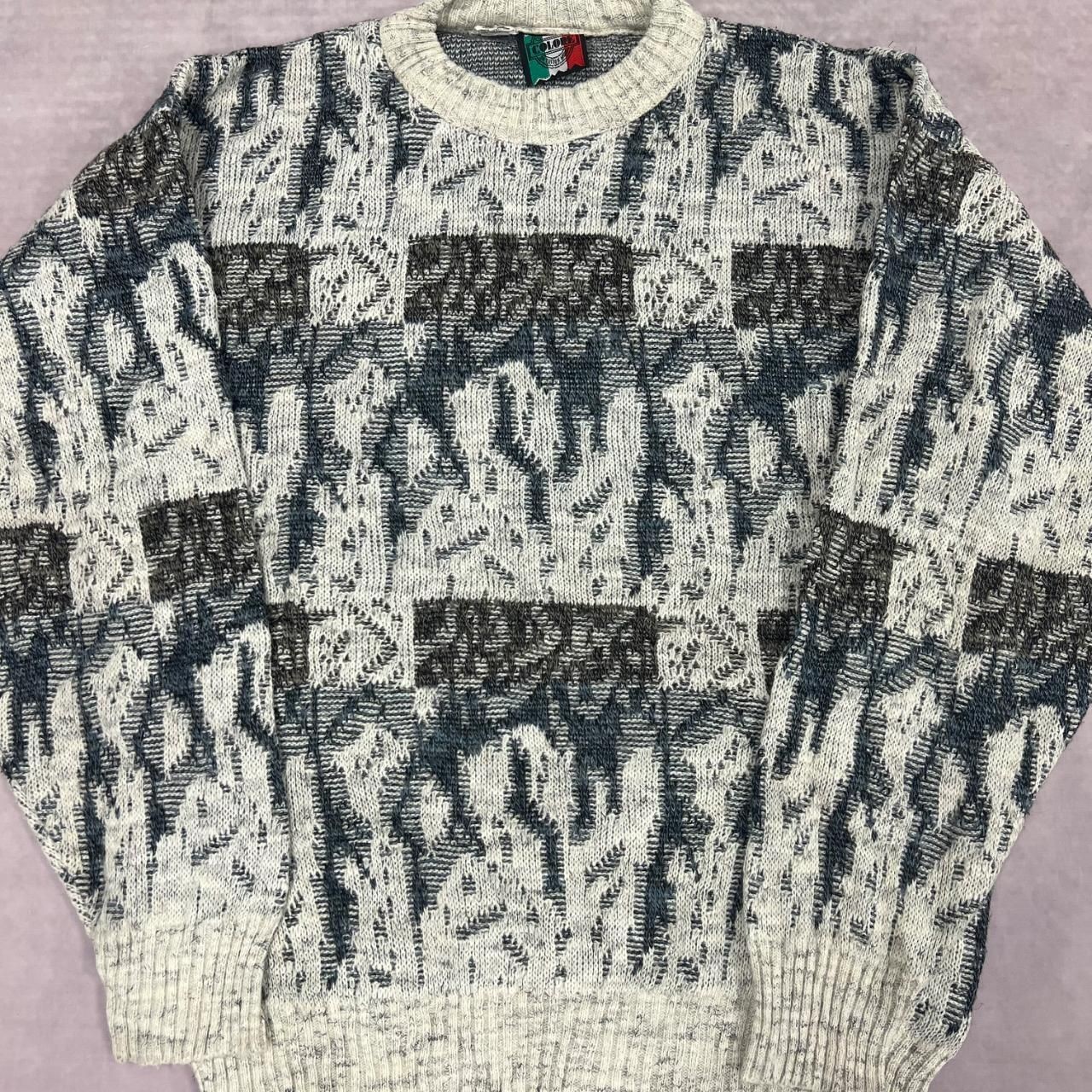 как выглядит Vintage Knitted Jumper Abstract Patterned Grandad Knit Sweater Men