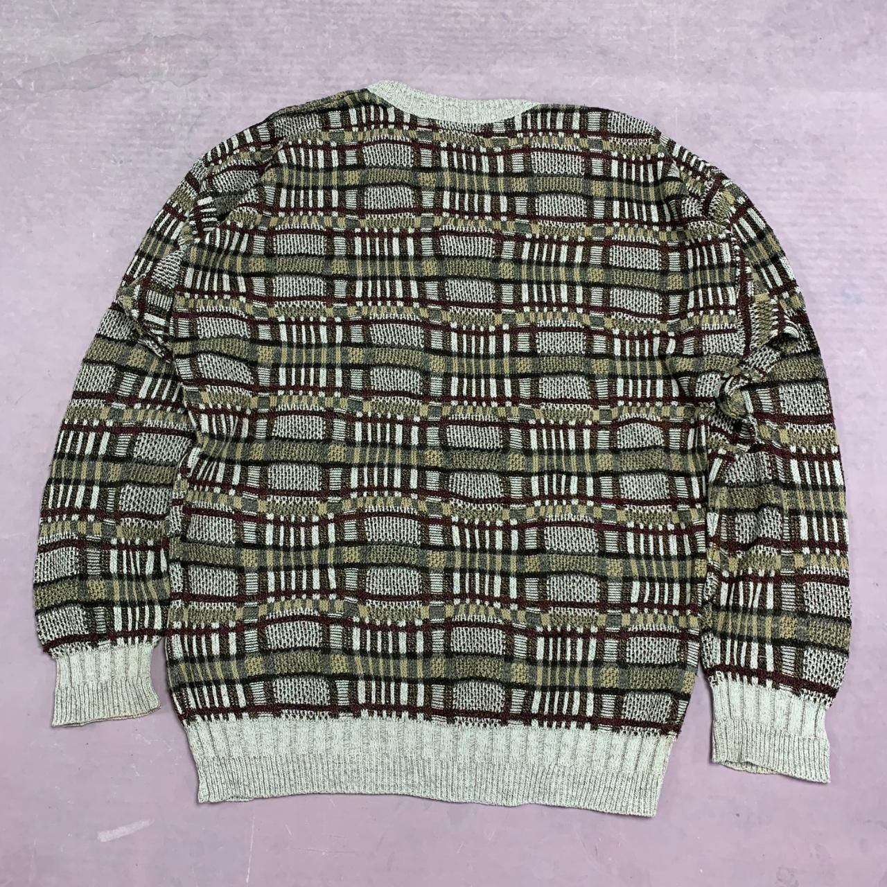 как выглядит Vintage Knitted Jumper Abstract Patterned Grandad Knit Sweater Men