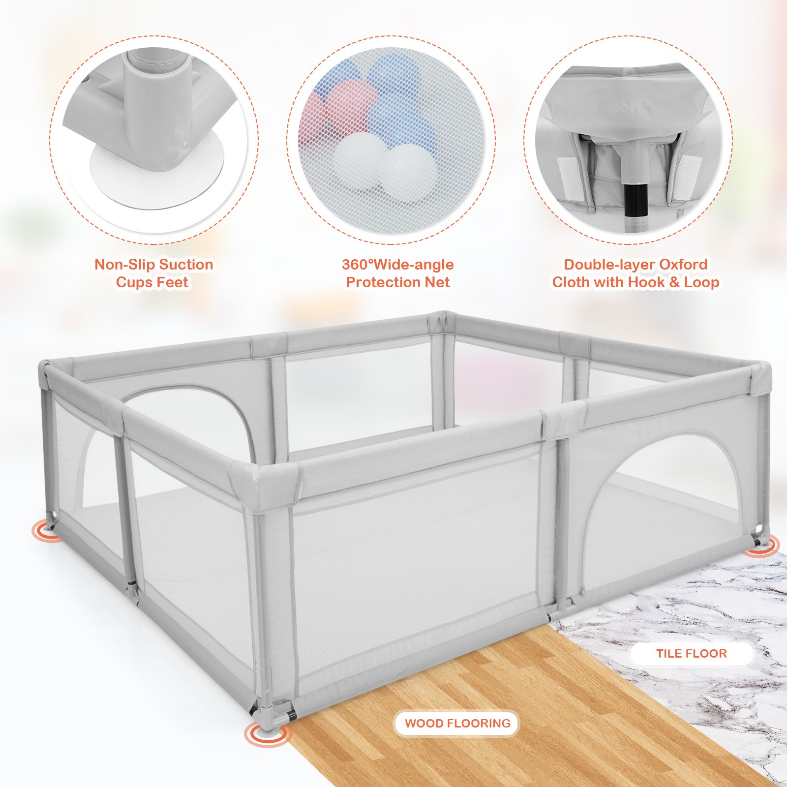 Costway Baby Playpen Infant Large Safety Play Center Yard w/ 50 Ocean Balls Grey