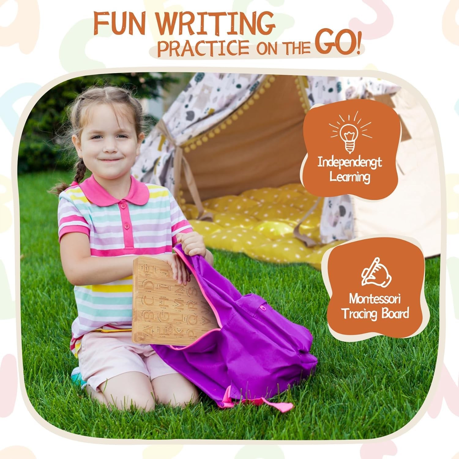 Asweets Montessori Wooden Alphabet Tracing 9''x7'' 1 piece , Wood Color