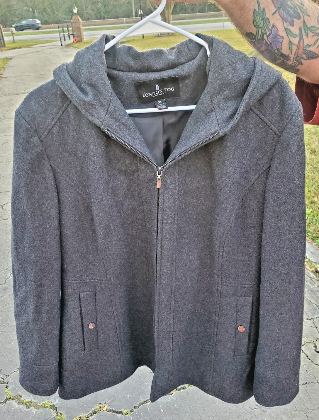 как выглядит London Fog Charcoal Grey Coat with Hood Xl фото