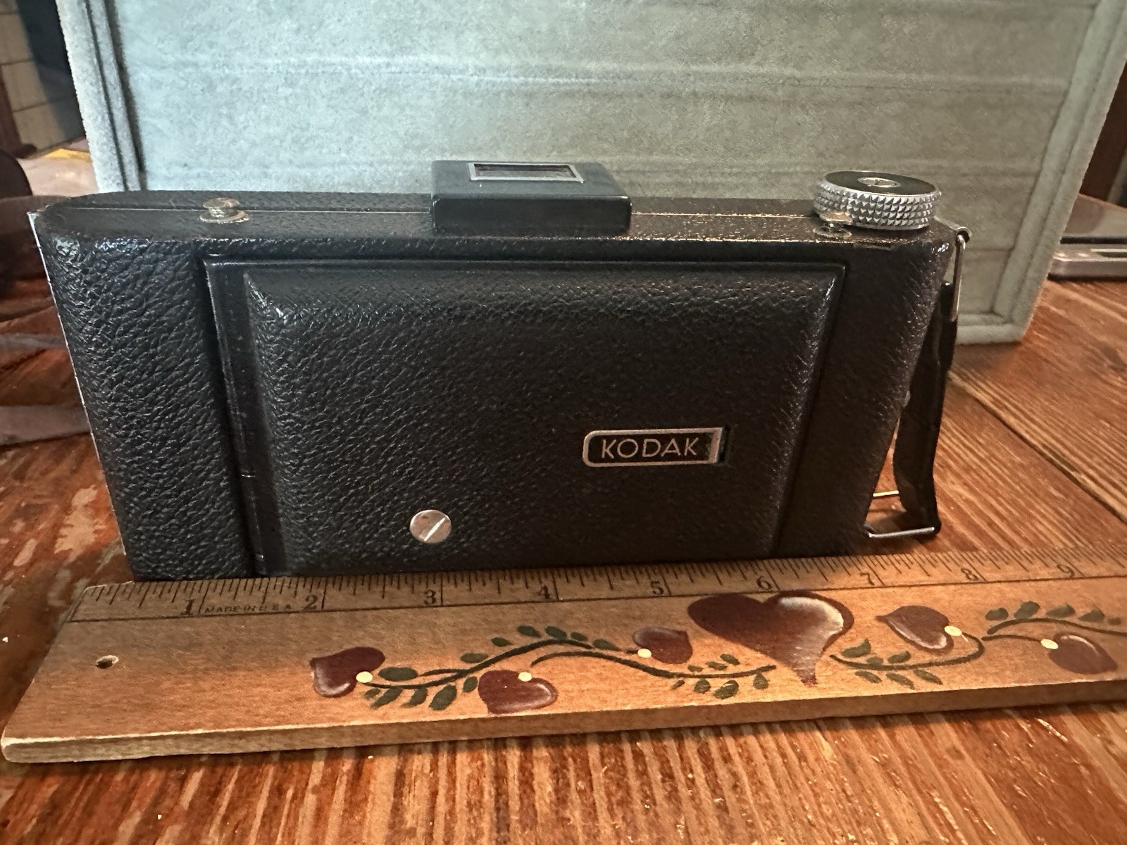как выглядит Vtg Kodak Vigilant Junior Six-20 folding camera W/leather Case READ Untested фото