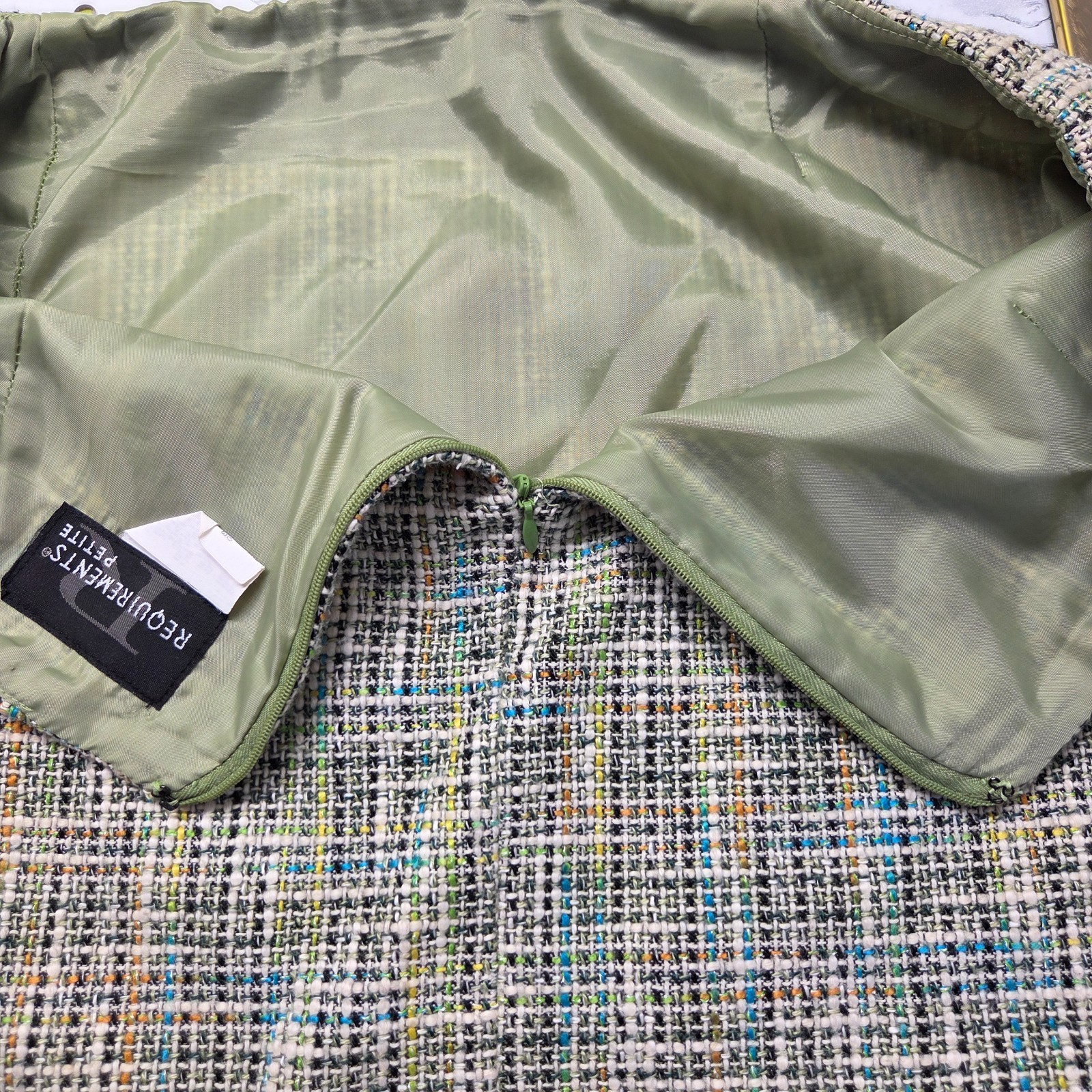 как выглядит Vintage Requirements 12 Petite Green Tweed Business Casual Knee Length Skirt фото