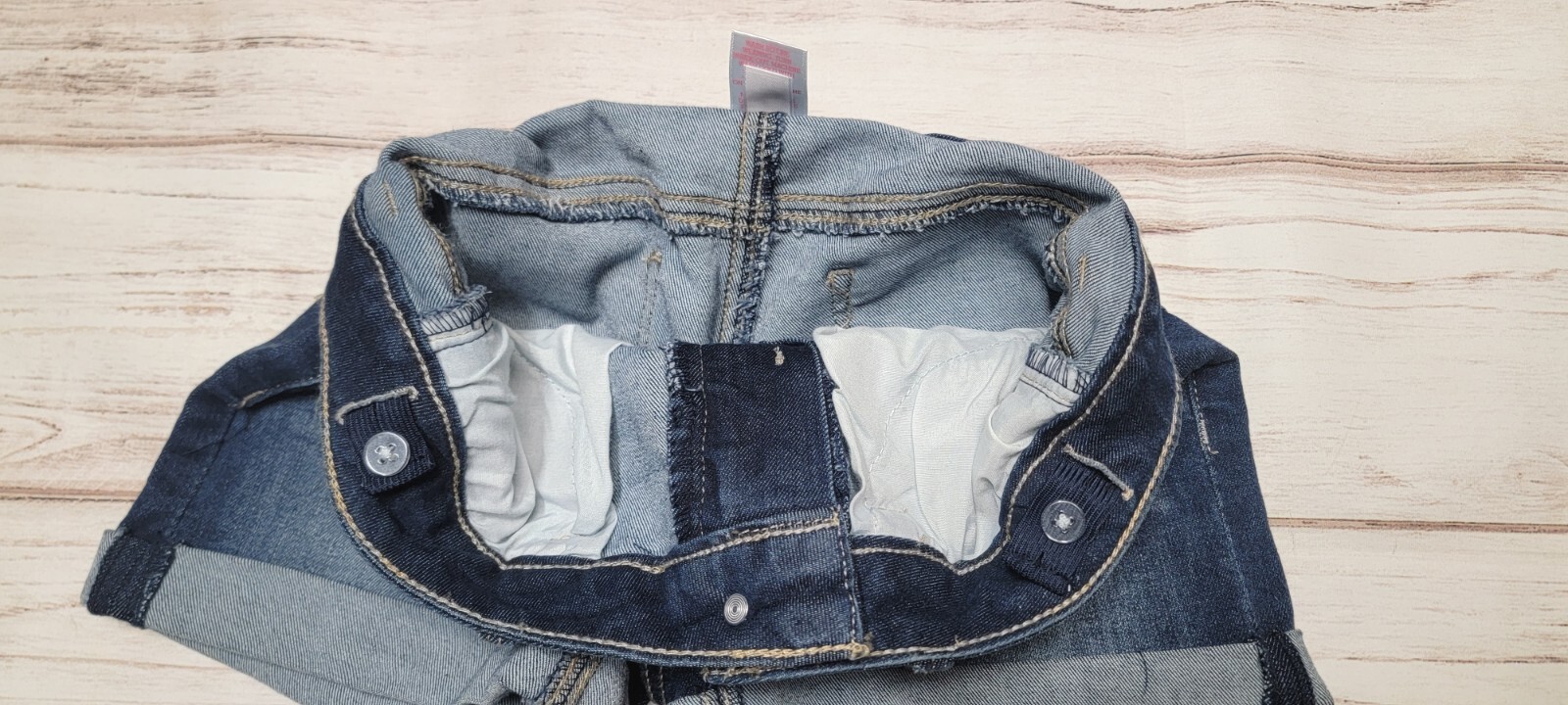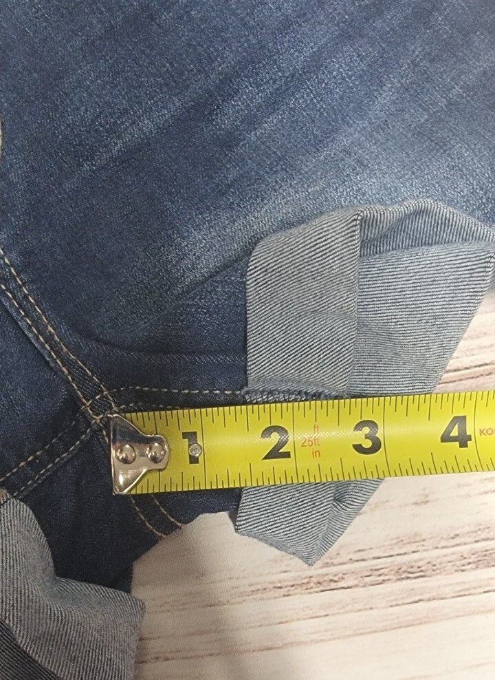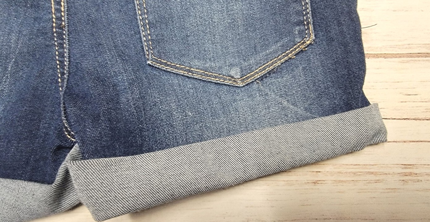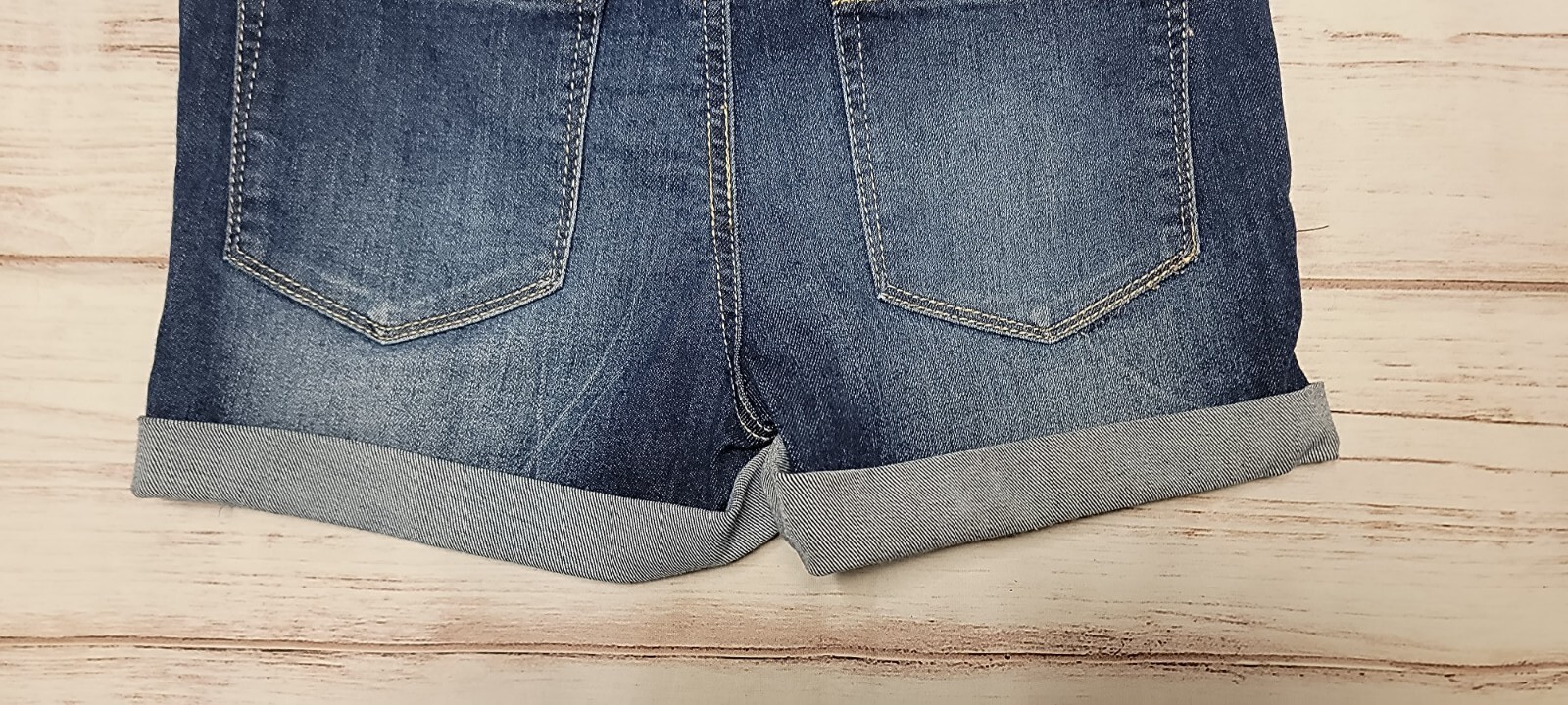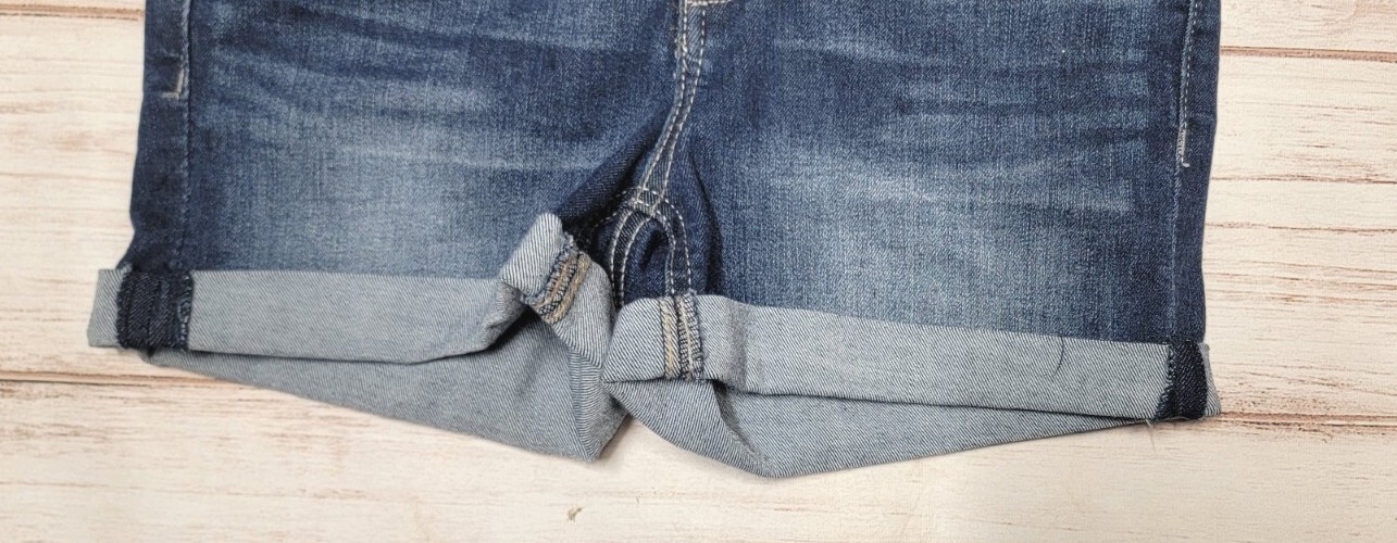 как выглядит GIRLS SO 12 DARK WASH DENIM STRETCH CUFFED WHISKERED ADJUSTABLE JEAN SHORTS фото