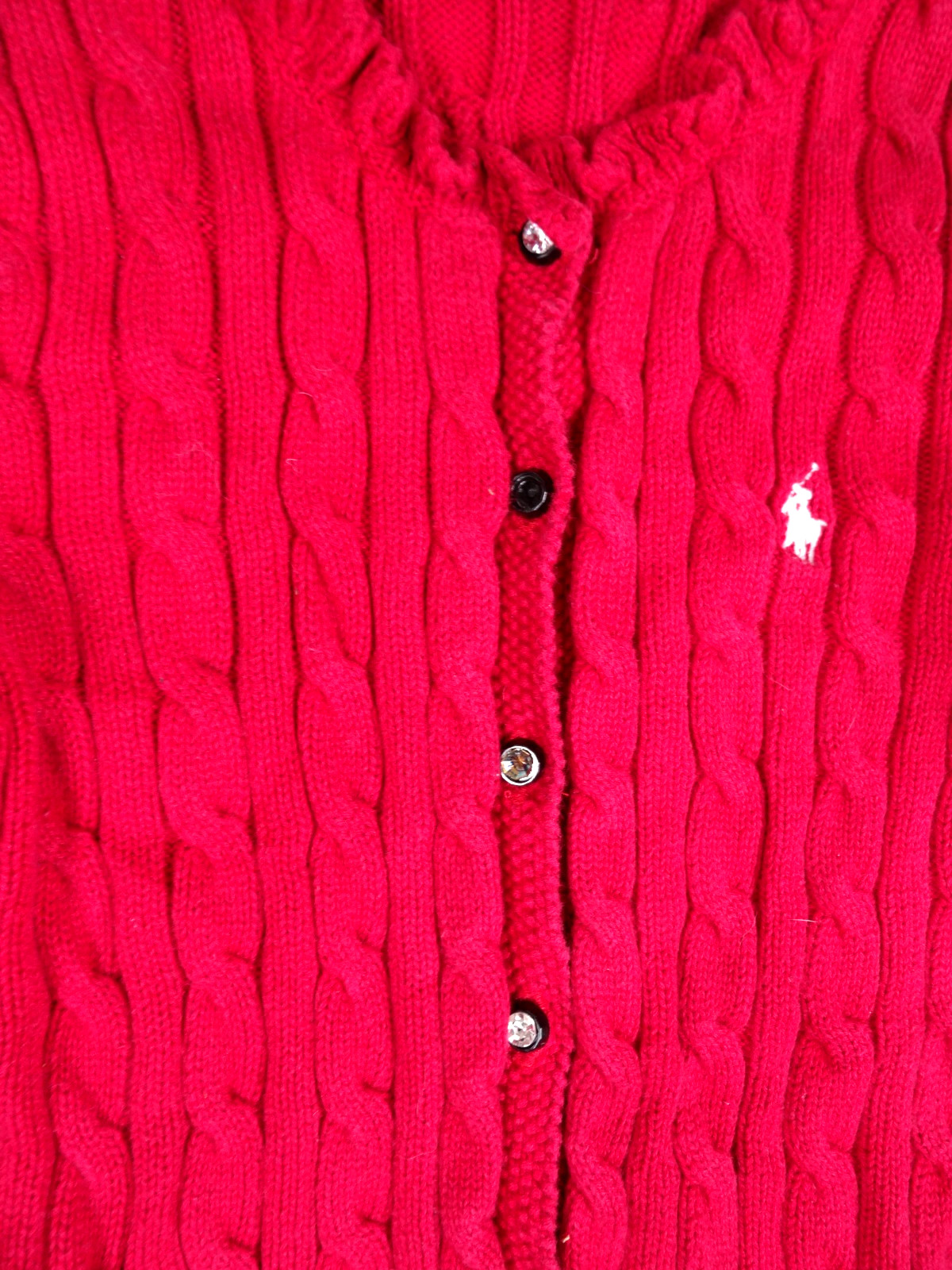 Vintage Polo Ralph Lauren Cable Knit Cardigan Sweater Girls M 8/10 Kids Preppy