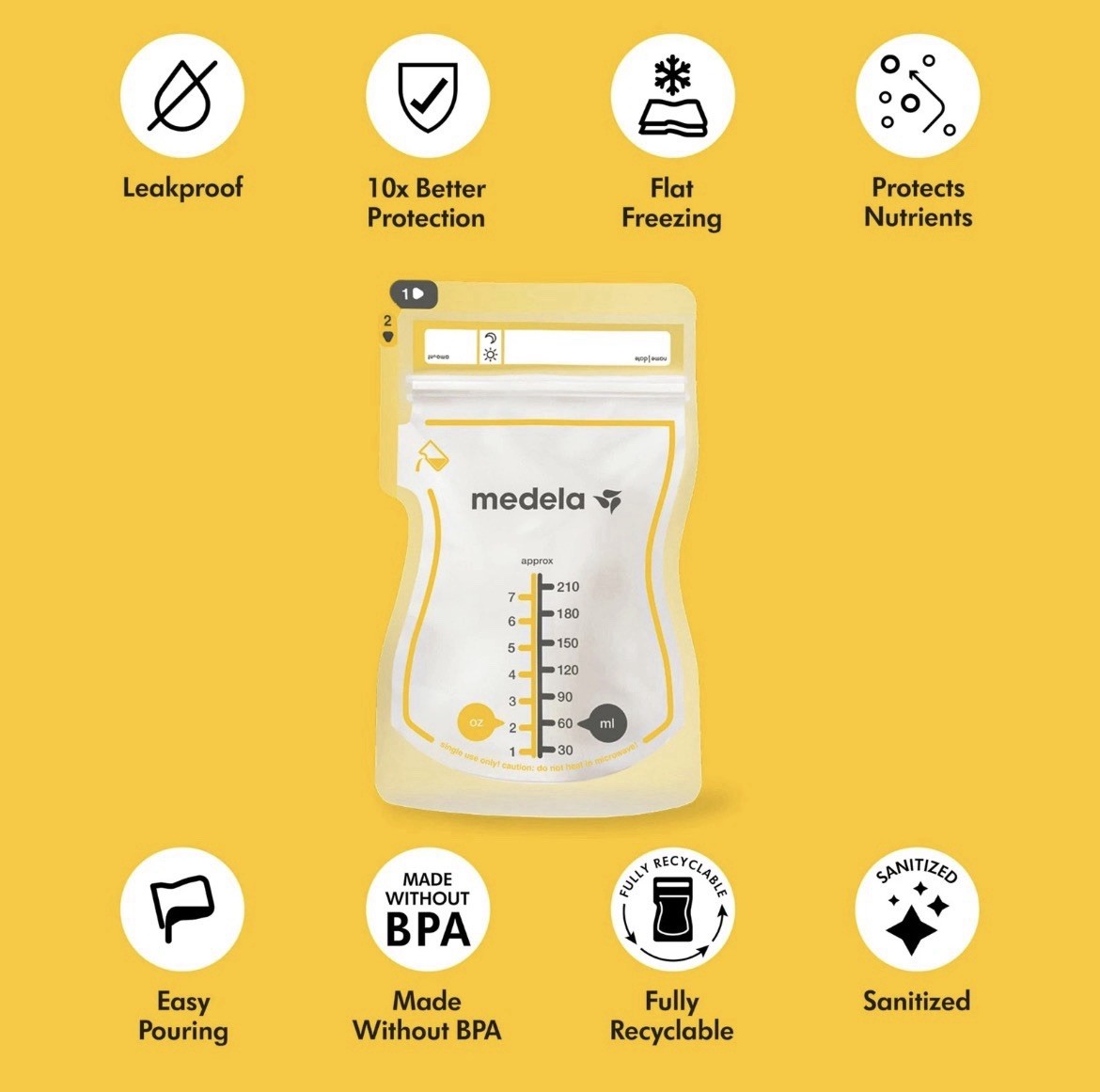 Medela Easy Pour Breastmilk Storage Bags 200 Count 7oz/210ml Disposable
