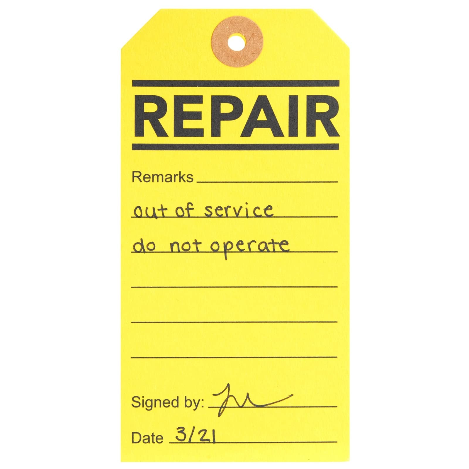 как выглядит Service Tags for Equipment - 100 Pack, Yellow, 2.6 X 5.25 in - Equipment Repair фото