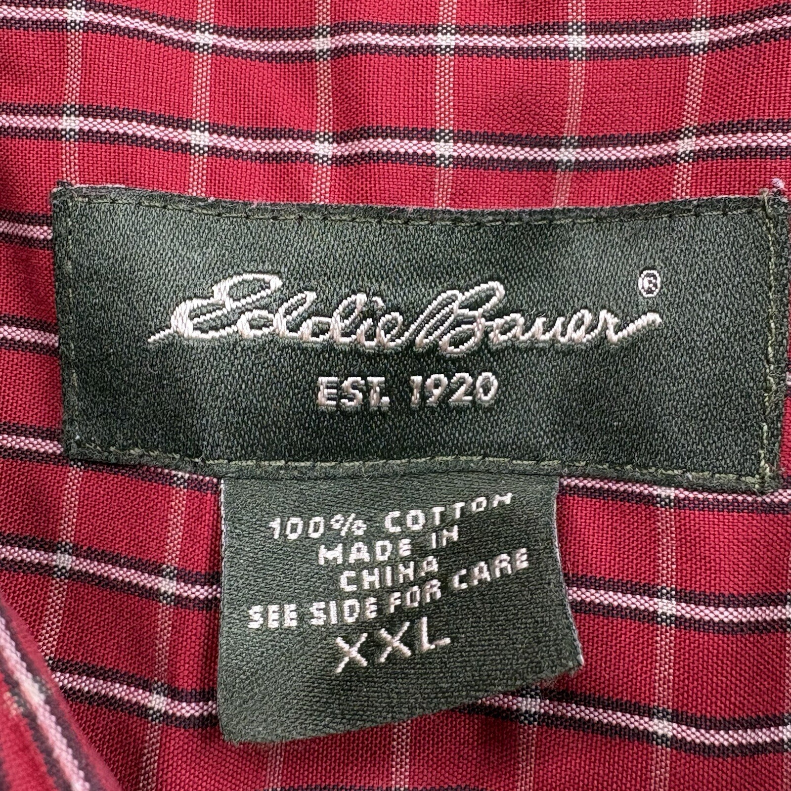 Eddie Bauer Shirt Mens 2XL Red Plaid Wrinkle Resistant Preppy Workwear Heritage
