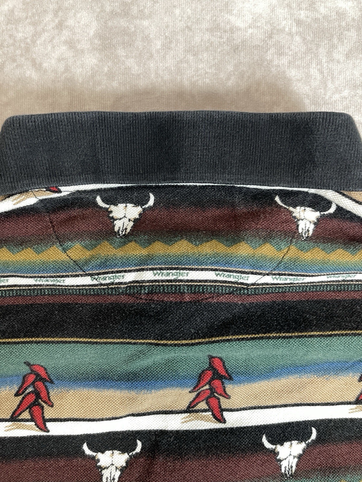 Vintage Wrangler Polo Mens XXL Aztec South Western Cowboy Shirt Embroidered AOP