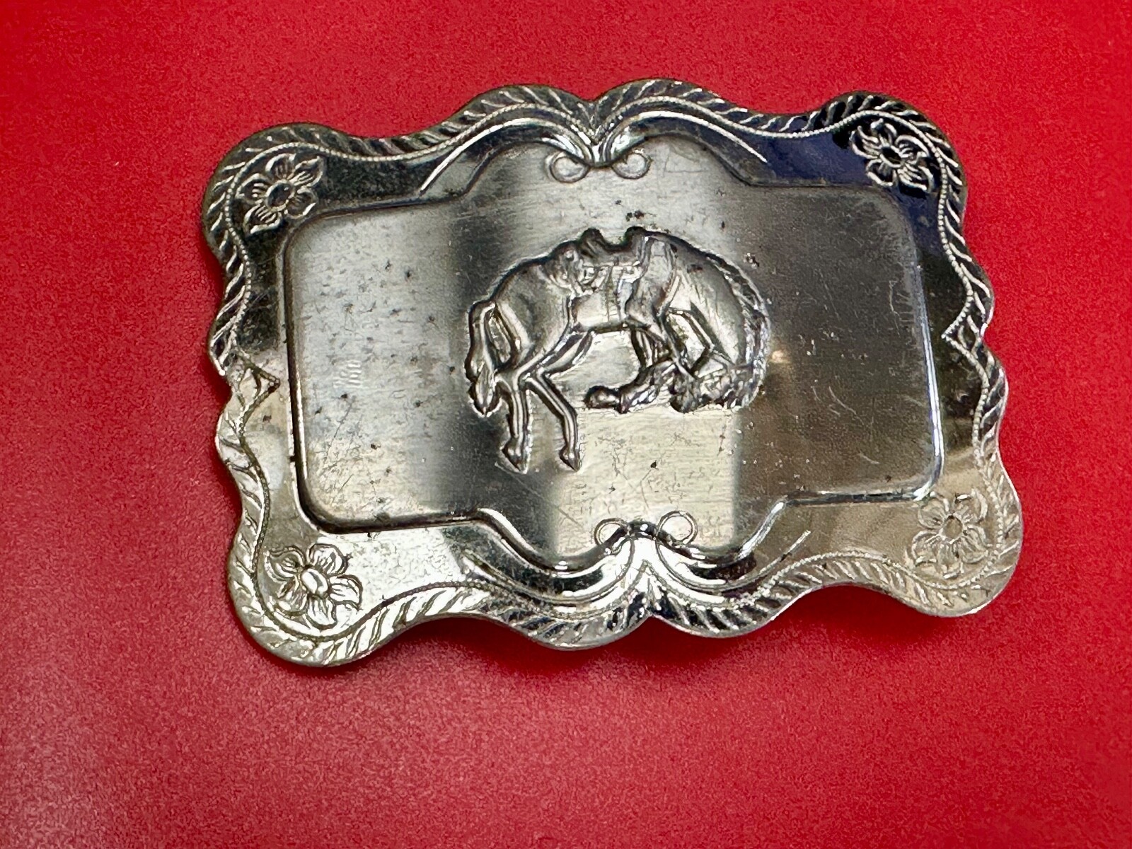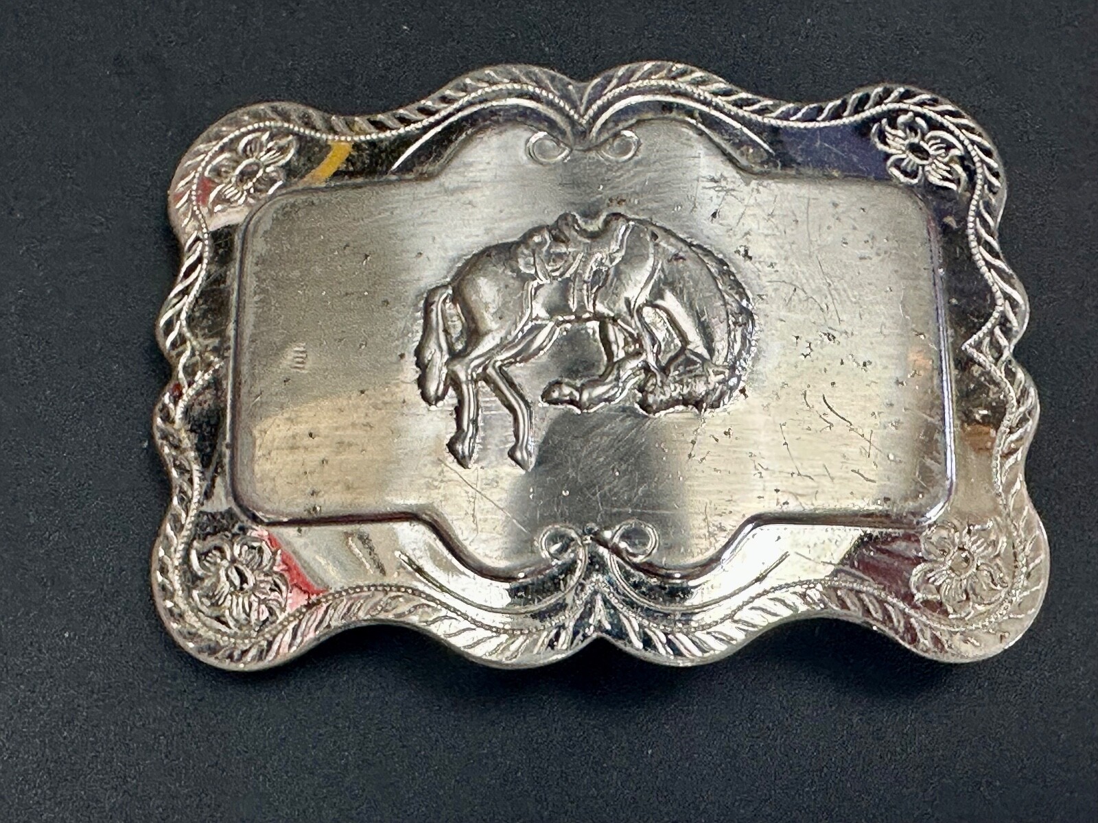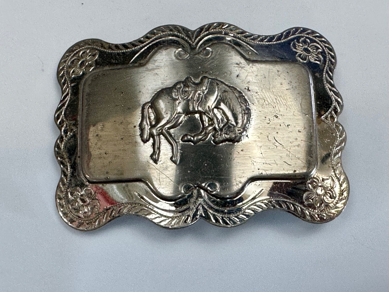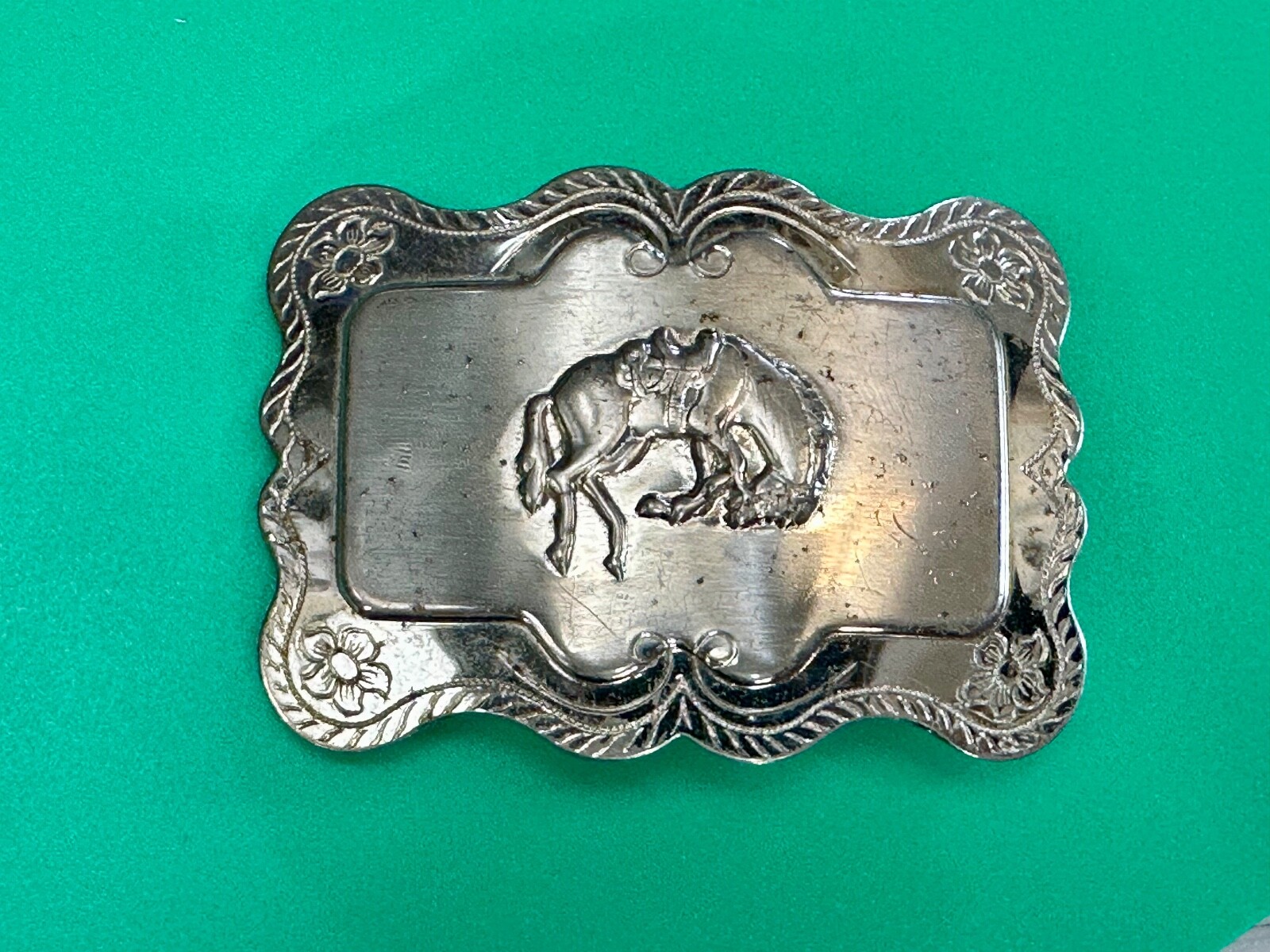Horse Cowboy Saddle Bronc Western Framed Outlined Vintage Belt Buckle