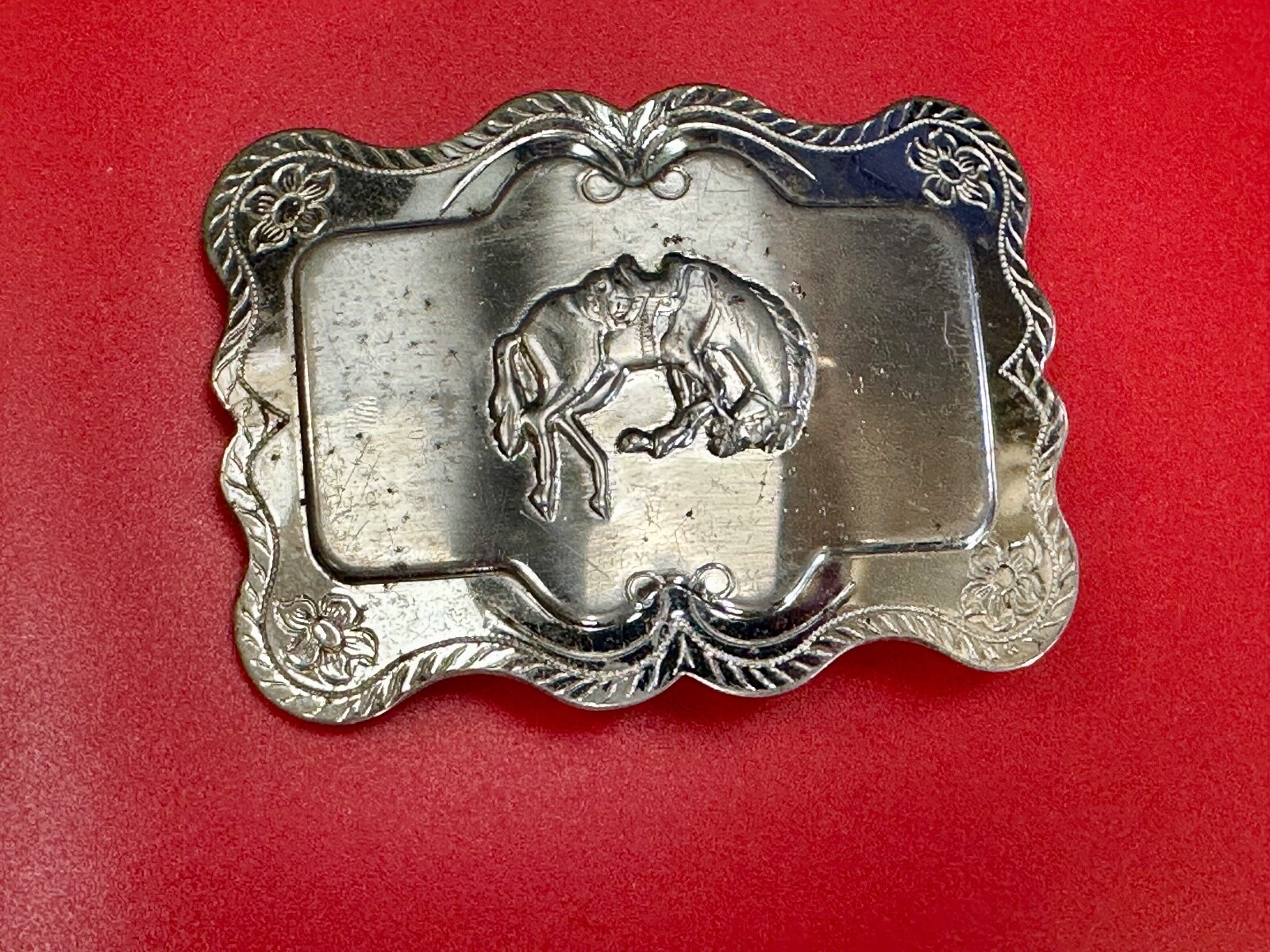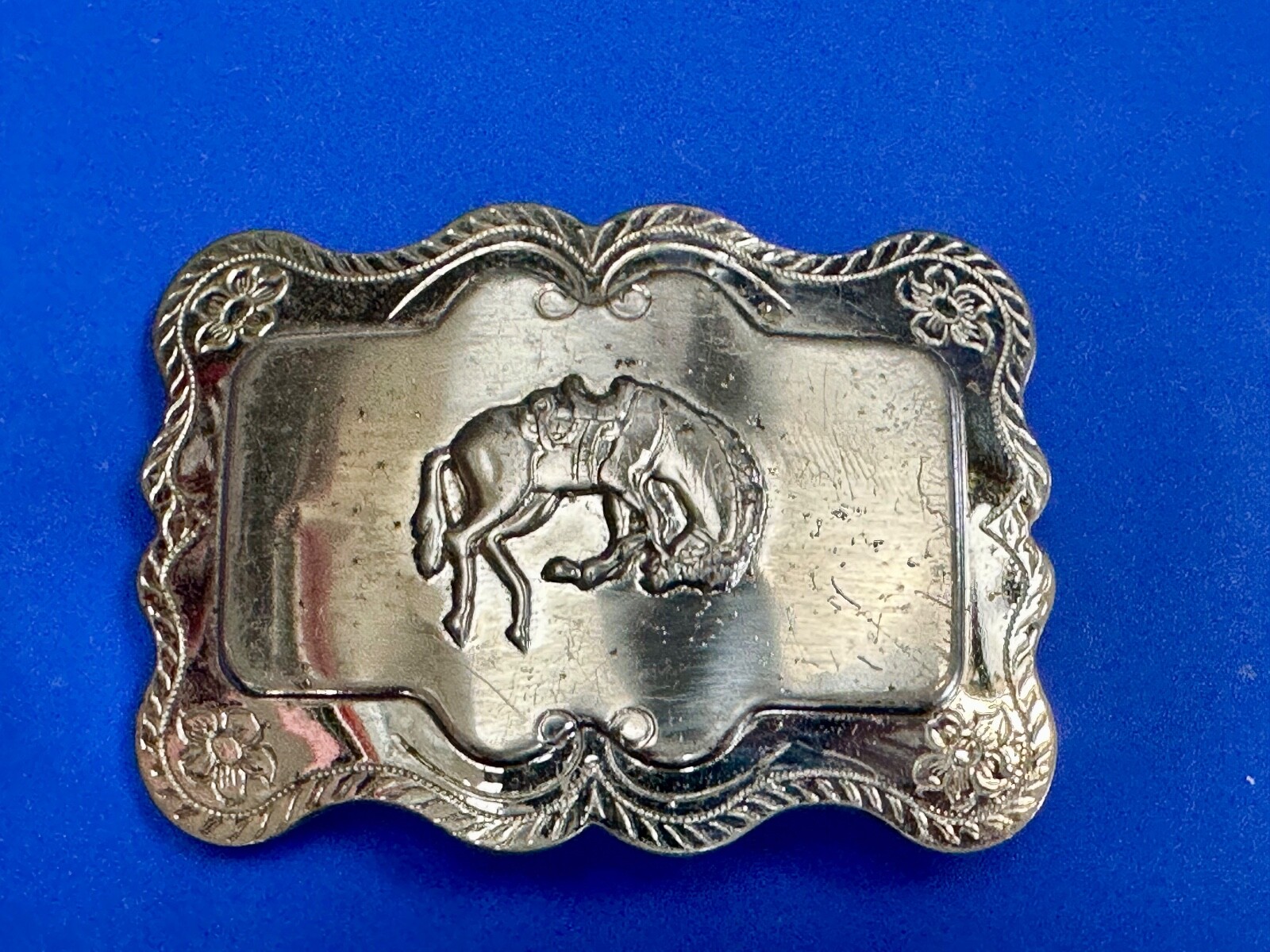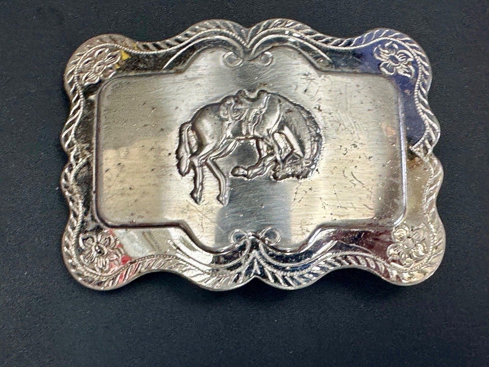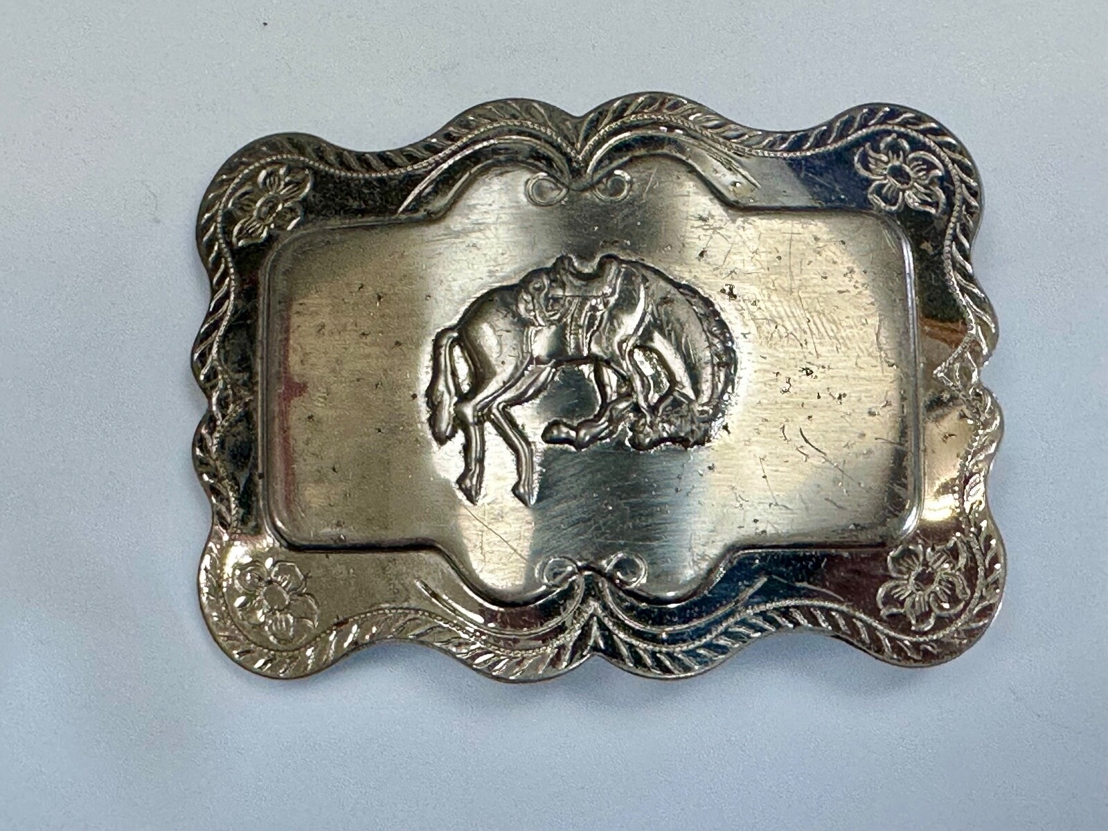 Horse Cowboy Saddle Bronc Western Framed Outlined Vintage Belt Buckle