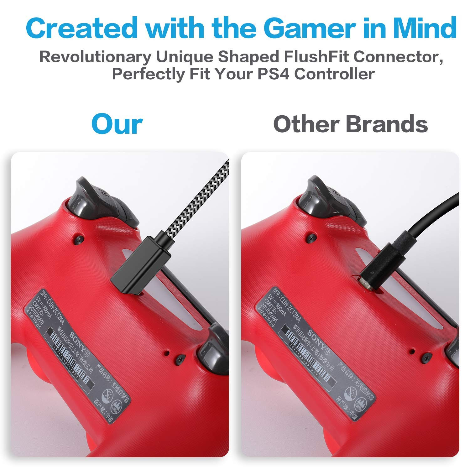 PS4 Controller Long Charger Cable 2 Pack 10FT Nylon Braided Micro USB Charging