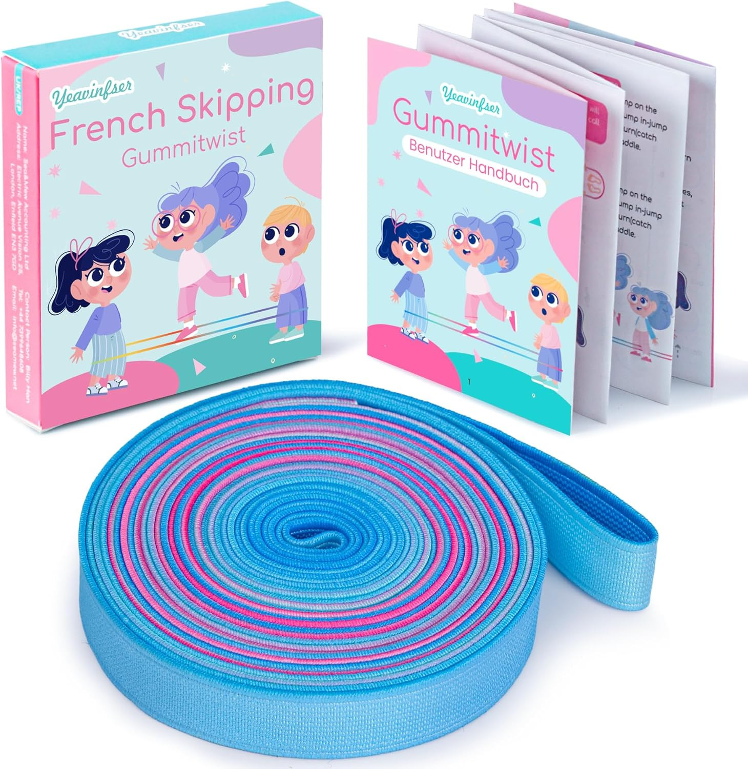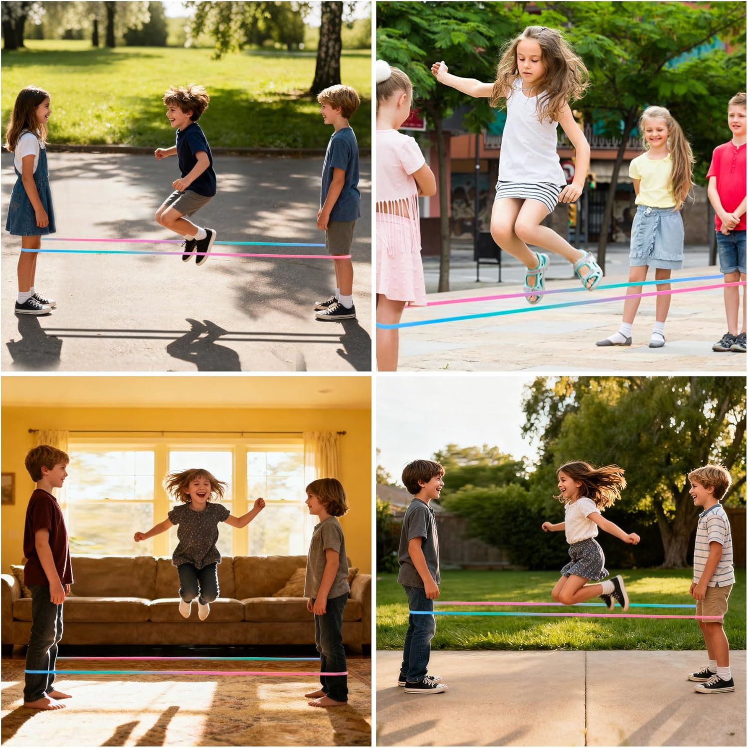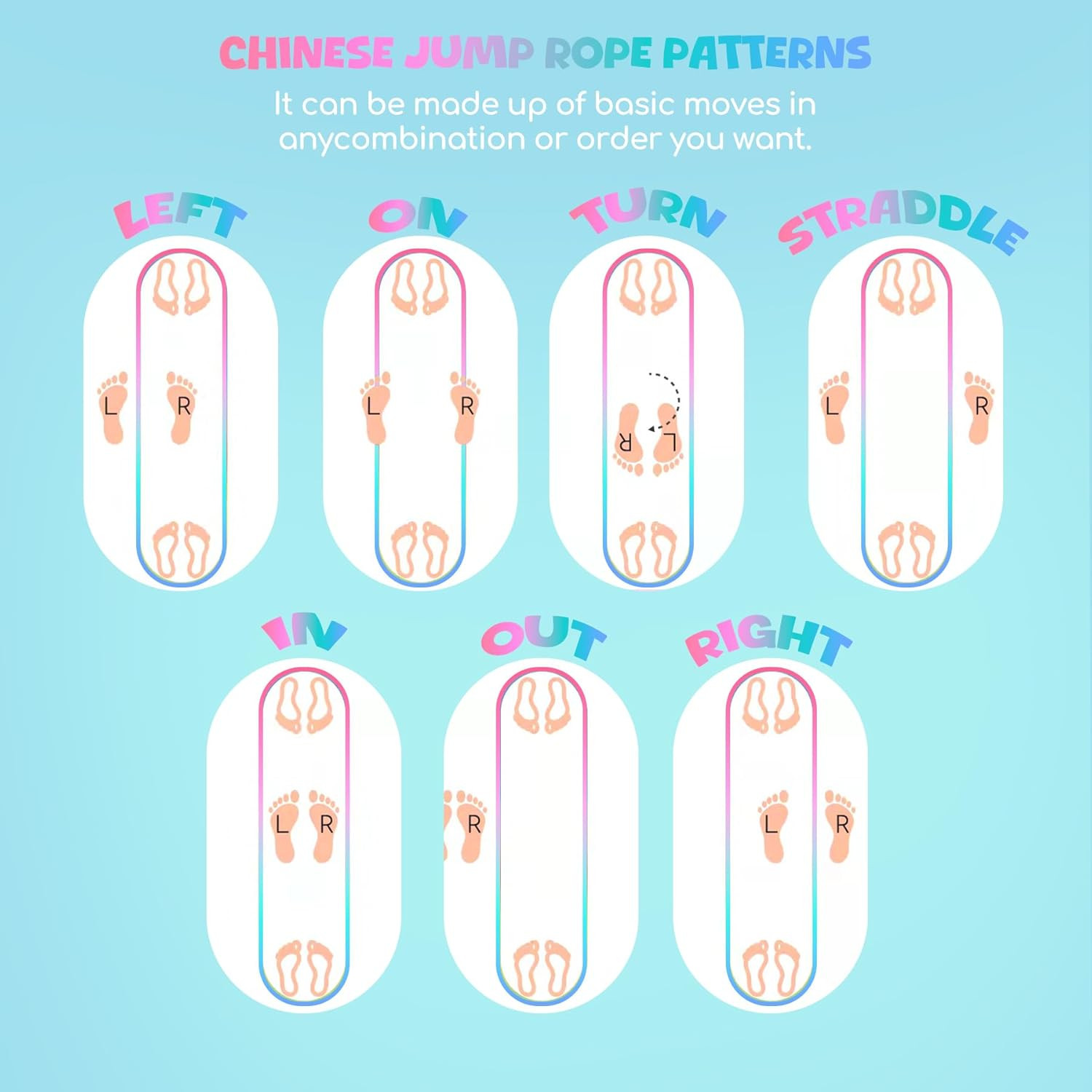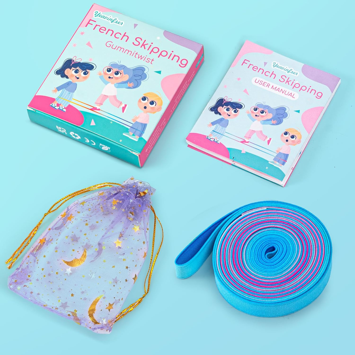 Chinese Jump Rope - 4M Long Rainbow Elastic Rope with Instruction, 1.5Cm Wide Fr