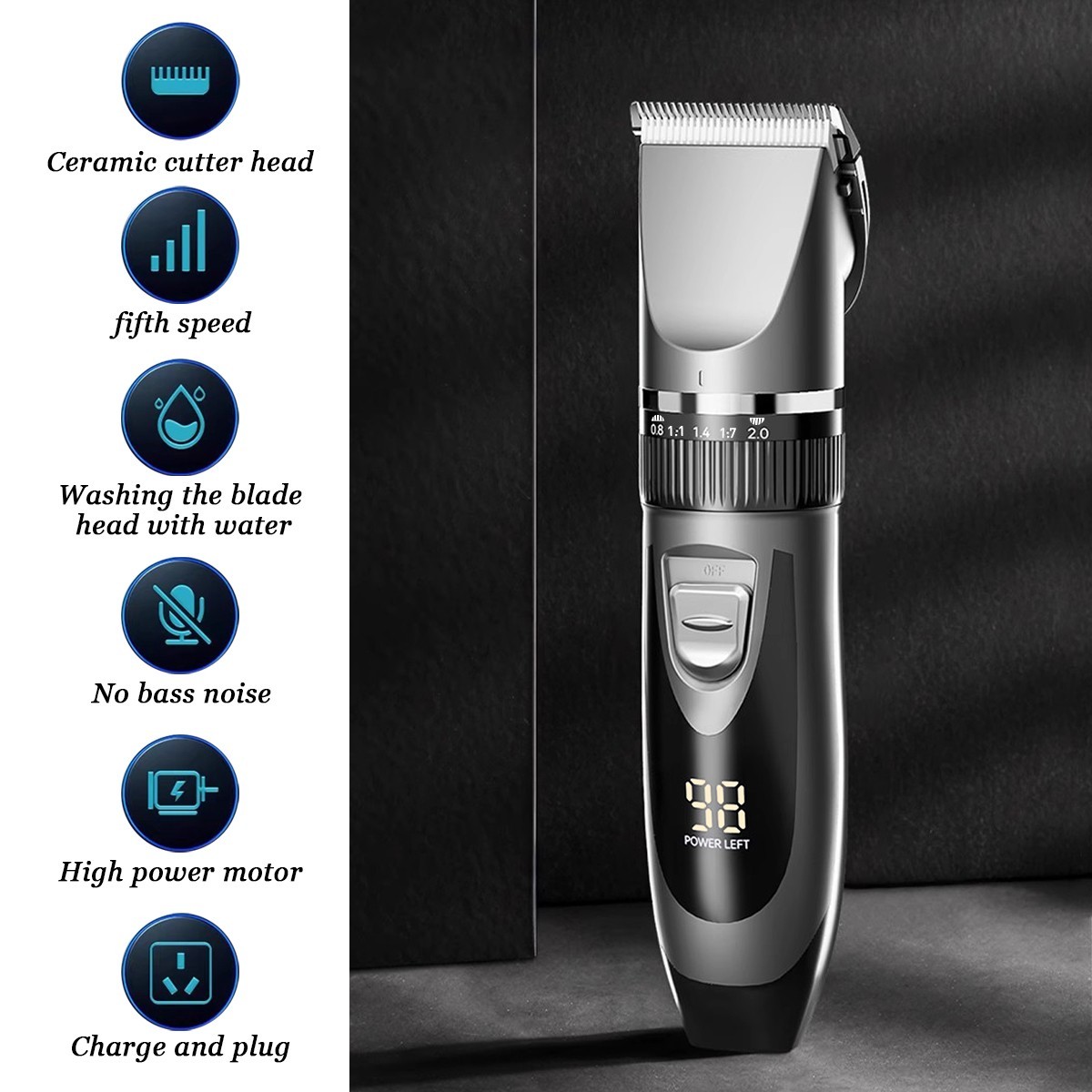 как выглядит Cordless Professional Hair Clippers Rechargeable Haircut Trimmer Kit LCD Display фото