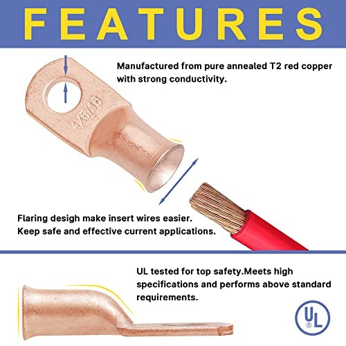 220PCS Battery Cable Ends Kit,110PCS AWG 8 6 4 2 1 Heavy 220 PCS Bare Copper
