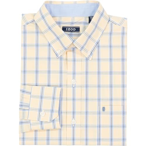 Mens Performance Comfort Long Sleeve Plaid Button Down Large Golden Cream