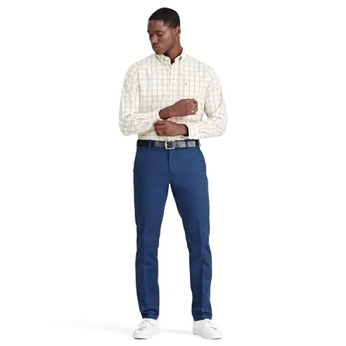 как выглядит Mens Performance Comfort Long Sleeve Plaid Button Down Large Golden Cream фото